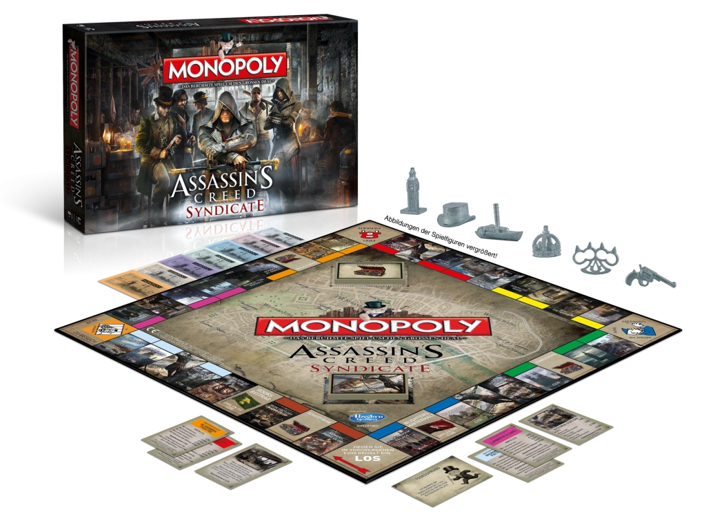 Das Assassin's Creed Monopoly-Brettspiel wird exklusiv in Europa erscheinen. Dabei können sich Sammler und Spieler über eine umfangreich an das Videospiel angepasste Version freuen. Bei den Spielfiguren handelt es sich um die Assassine der verschiedenen Zeitalter, also Altaïr Ibn-La'Ahad, Ezio Auditore da Firenze, Connor, Aveline de Grandpré, Edward Kenway und Arno Dorian.