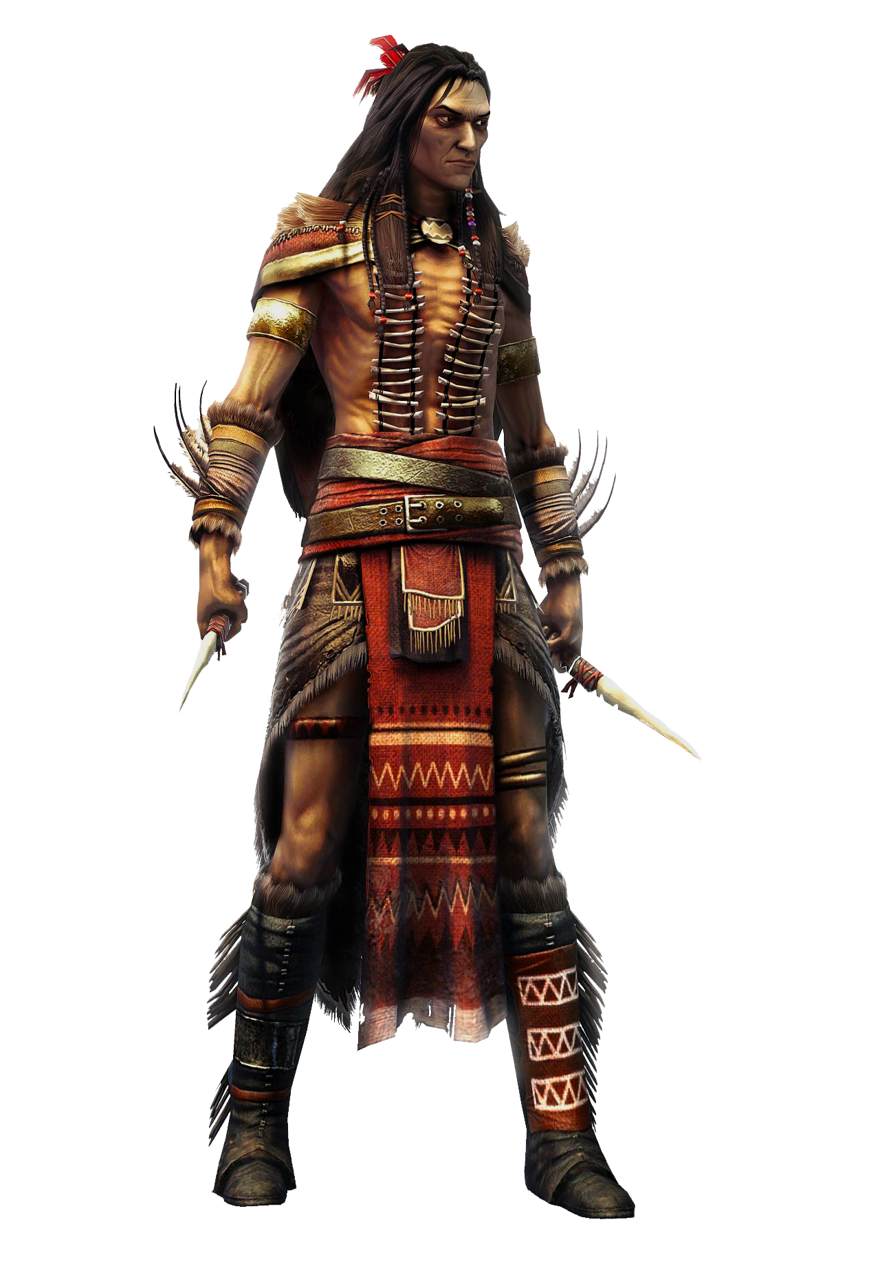 Dieser menschliche Kieger war in seinem Land gleichermaßen gefürchtet wie respektiert. Obwohl er nichts für soziale Interaktion übrig hatte, kämpfte er doch mit allen Mitteln, wenn es um die Verteidigung seines Dorfes ging. Er galt als bester Jäger der amerikanischen Ostküste, angeblich hat er sogar einmal einen Bären mit bloßen Händen erlegt.