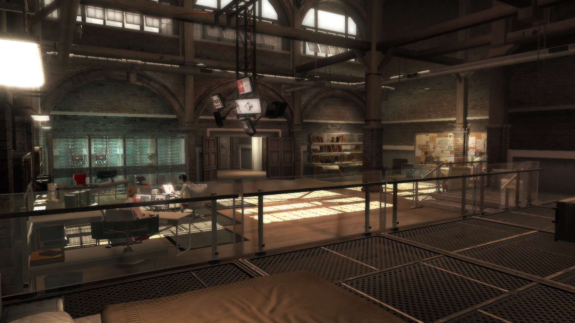 La sala principal contenía la mayor parte del equipo, incluido el Animus 2.0, y los escritorios para cada uno de los Asesinos. Una pequeña área asignada también contenía un sofá y una cama doble.[2]