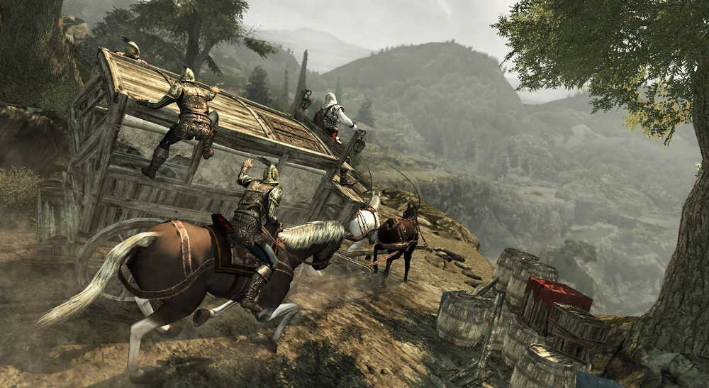 Ezio Auditore da Firenze traversa la chaîne de montagne en compagnie de son ami Leonardo da Vinci en chariot, quittant la Toscane pour gagner la Romagne. Mais ils furent attaqués par des soldats à la solde de Rodrigo Borgia, le Grand Maître de l'Ordre des Templiers. Mais heureusement Ezio réussit à se débarrasser des attaquants grâce à ses talents d'Assassin et de son pilotage du chariot.[1]