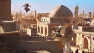 En tant que futur Assassin, Basim pourra utiliser ses compétences d'escalade dans un environnement urbain à grande échelle, sautant d'un toit à l'autre, escaladant d'immenses tours,[1] utilisant notamment un bâton permettant de traverser de grands espaces entre les bâtiments,[3] et échappant aux gardes en se déplaçant de manière acrobatique entre les quatre districts de Bagdad. Lorsque les informations ne peuvent être obtenues en rassemblant des indices, l'aigle impérial[3] de Basim, Enkidu, pourra s'élever dans les airs, repérer des zones, et marquer des ennemis que Basim éliminera discrètement.[1]