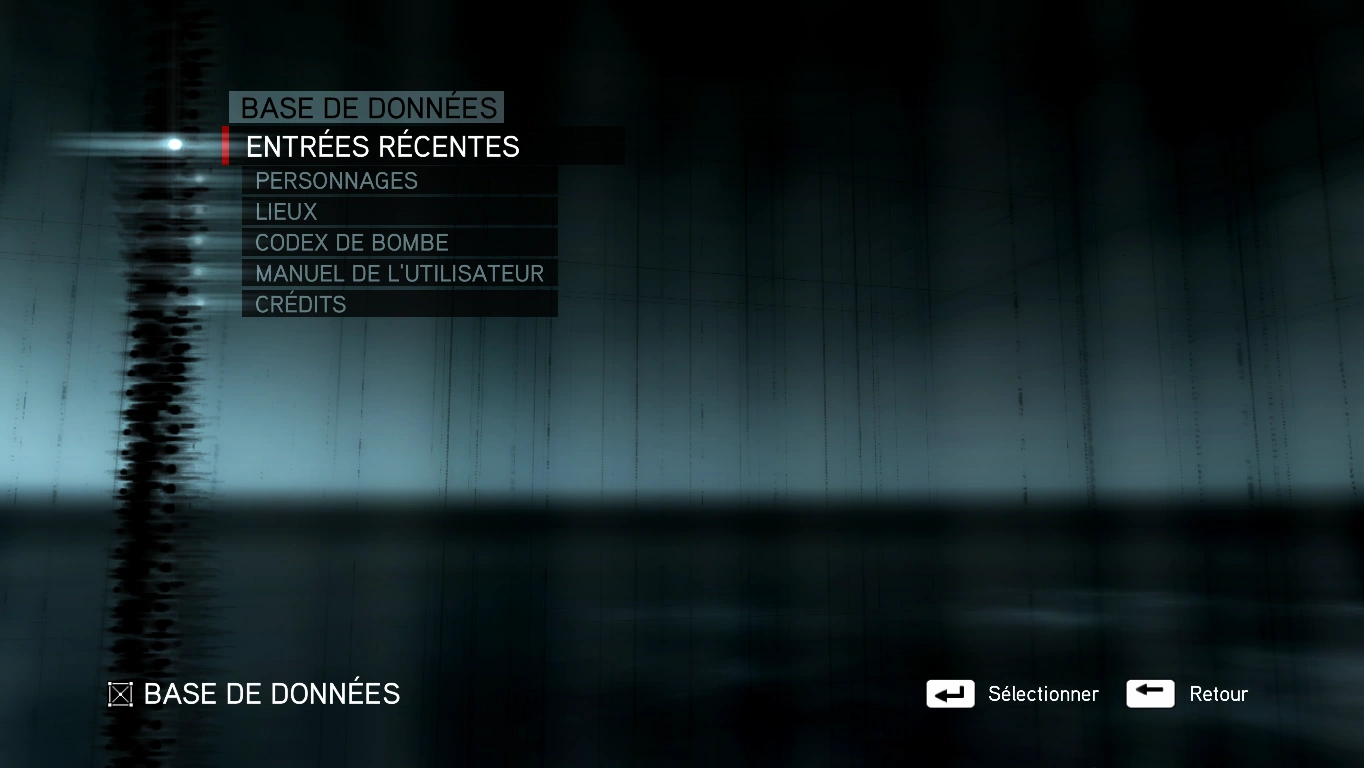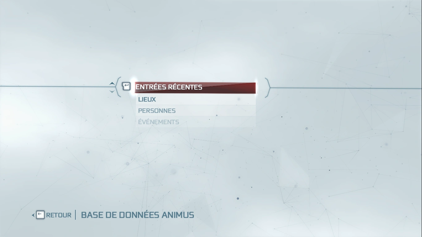 Le menu de la base de données de l'Animus 2.0