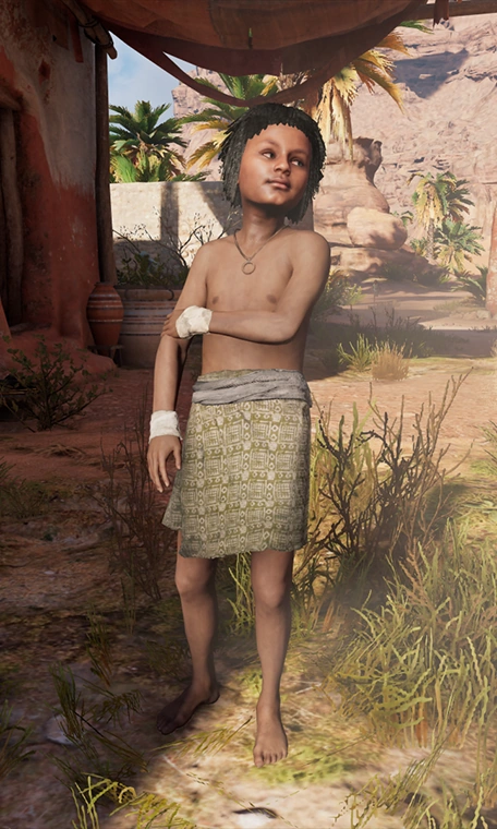 Fort heureusement, Bayek de Siwa venait de rentrer à Siwa et retrouva la trace de Chenzira avant de le ramener à sa famille.