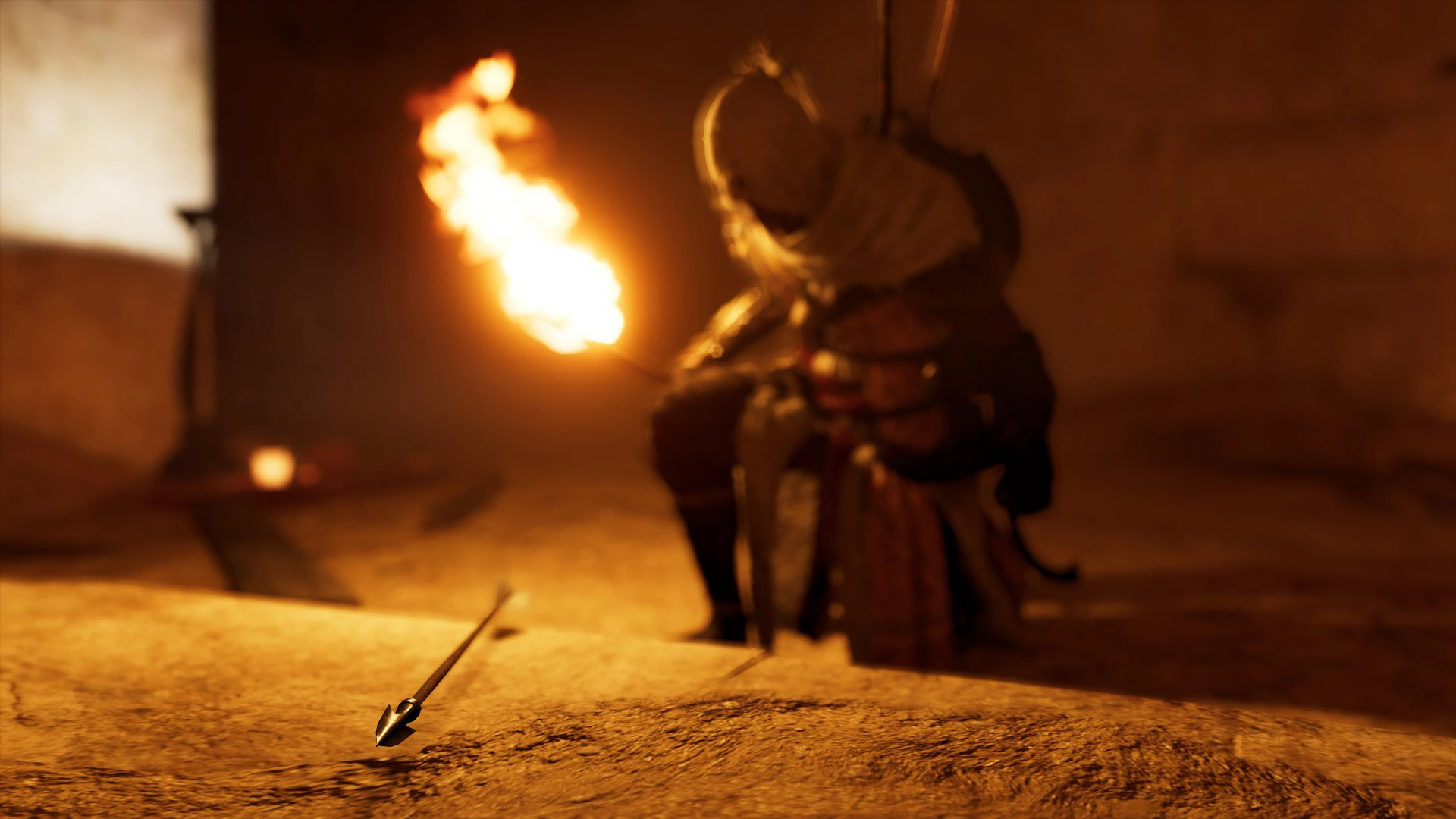 - Bayek: La flèche de Roudjek. C'est avec elle que j'ai rayé son nom de ma liste. La voilà sur le sol, oubliée.