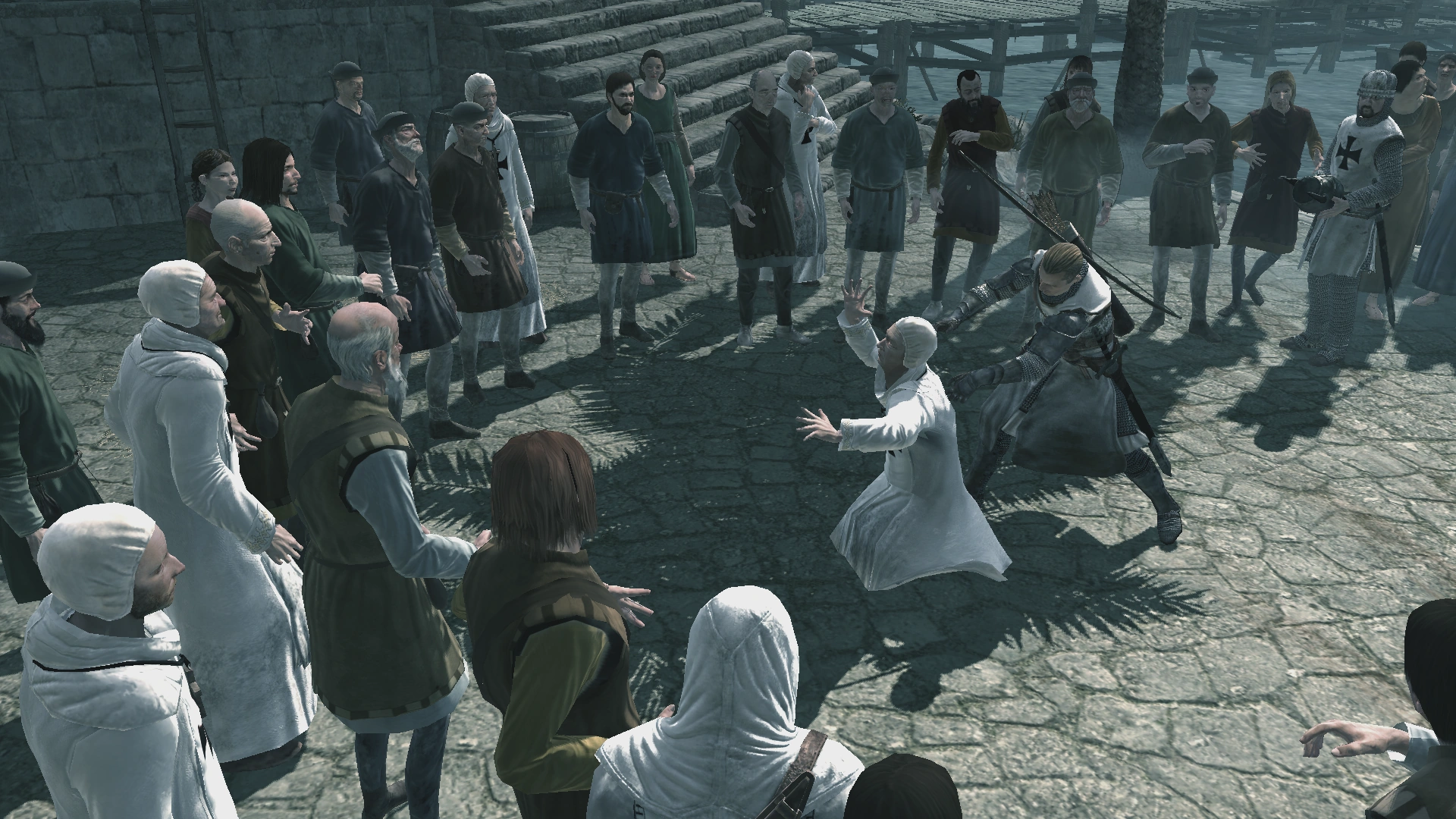 Sibrand rentra au port, où il surprit un érudit vêtu de blanc, qu'il prit pour un Assassin. Après l'avoir harcelé et exécuté, Sibrand cria à la foule de ne pas rendre service aux Assassins.