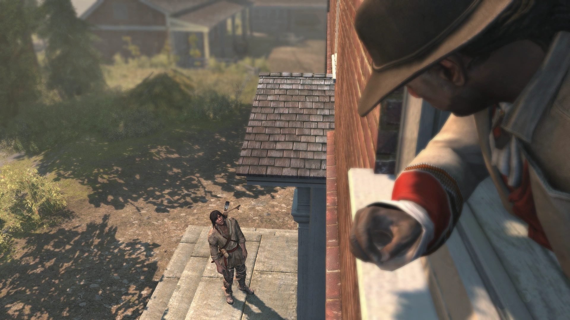 Ratonhnhaké:ton partit à la recherche de l'homme dont lui avait parlé Junon, et arriva au Domaine Davenport.