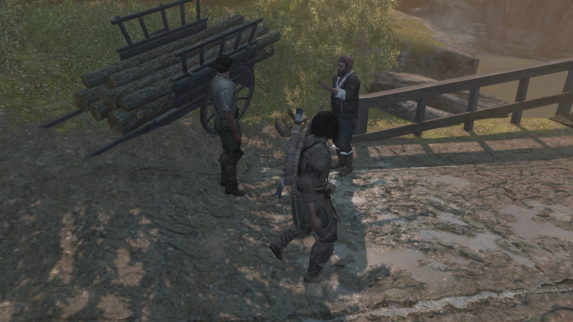 Ratonhnhaké:ton entendit les bribes d'une conversation entre deux bandits.