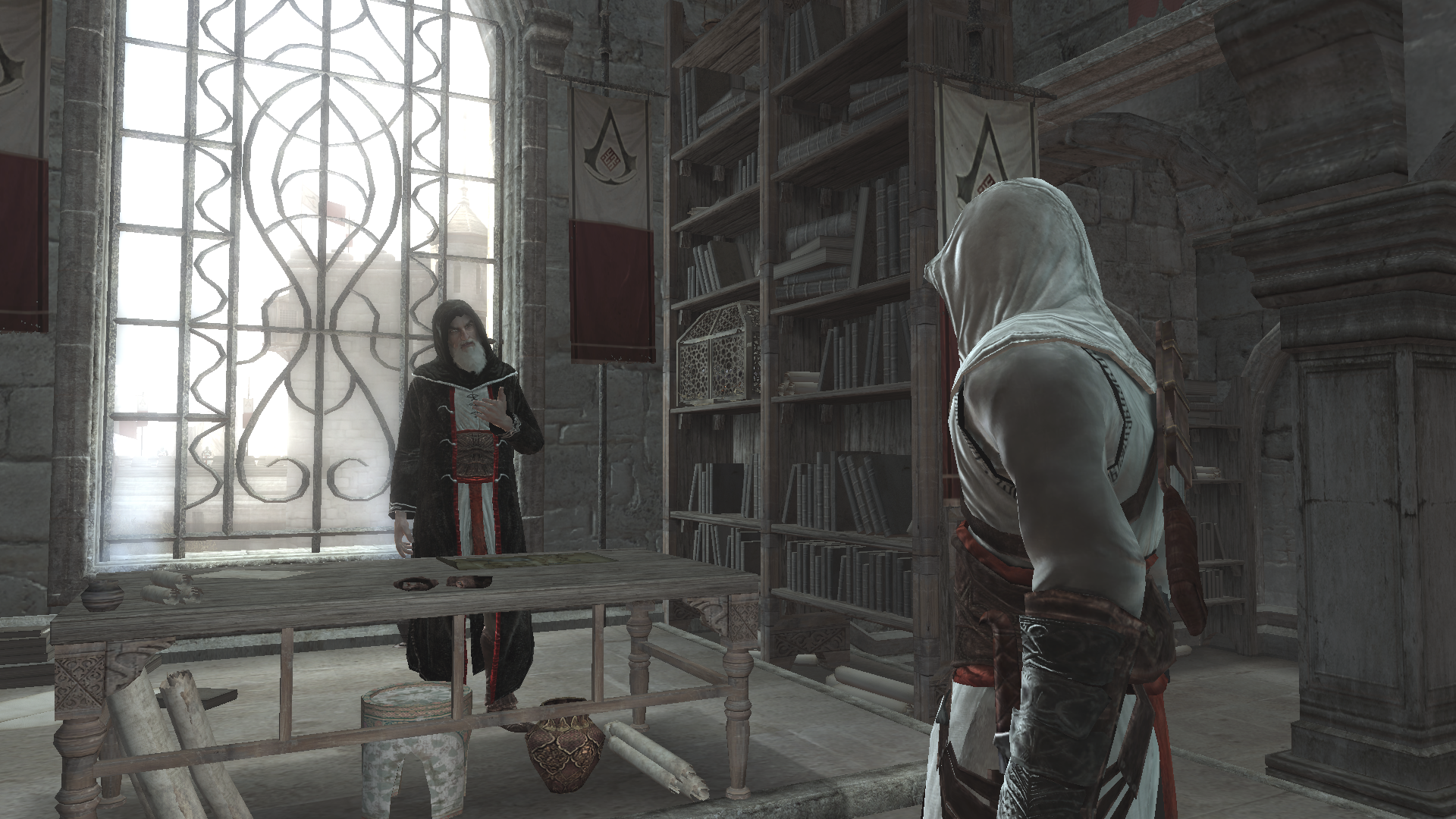 Altaïr arriva a Masyaf e si reca nello studio del maestro.