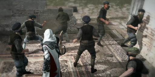 Ezio Auditore da Firenze si avvicina ad un gruppo di ladri.
