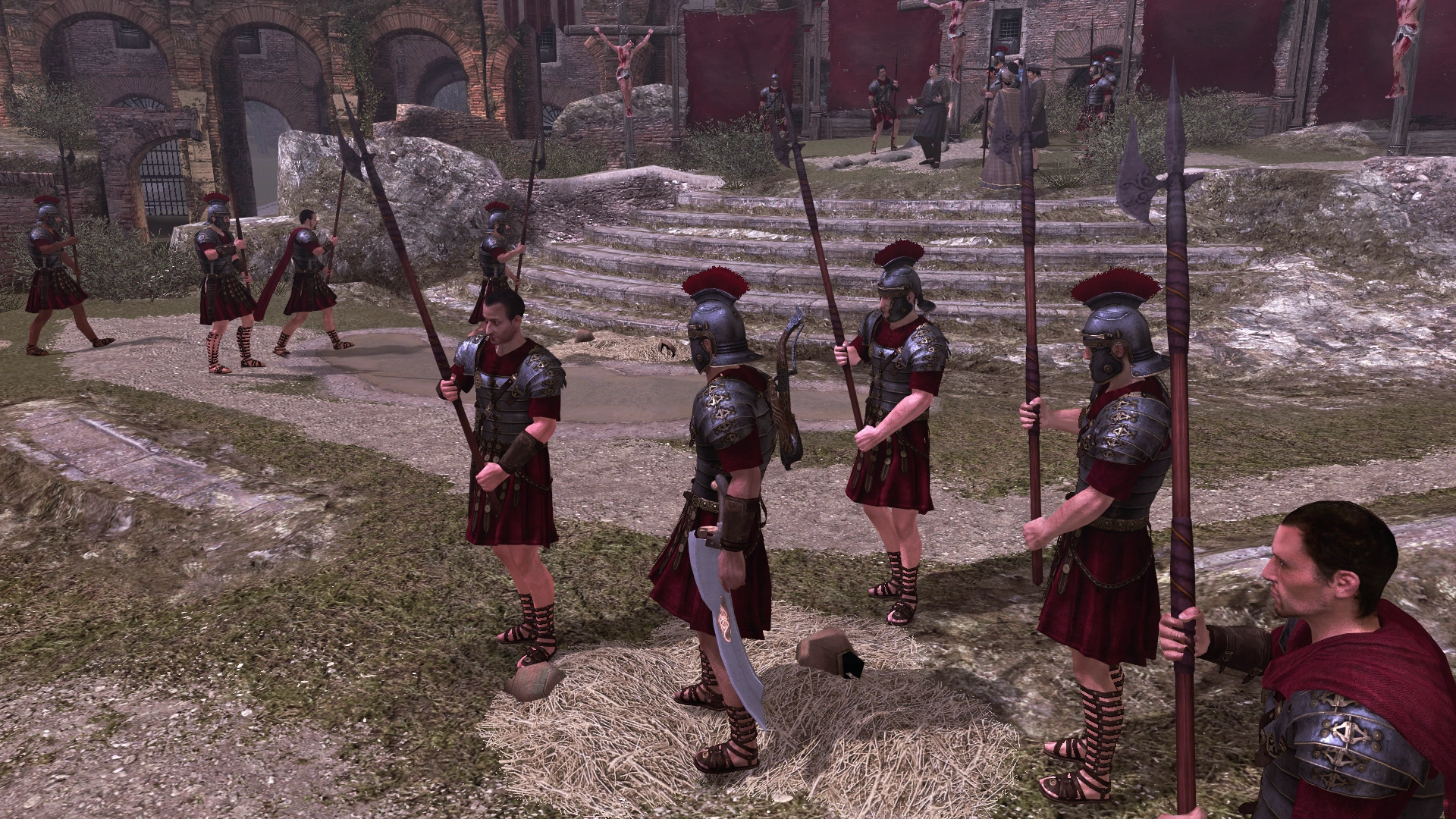 (A Longino) Longino, prendi in mano questa lancia. - Centurione: Si, prendi questa lancia e fai attenzione. Dovrai fare, così come ha detto il sacerdote, una cosa di grande importanza.
