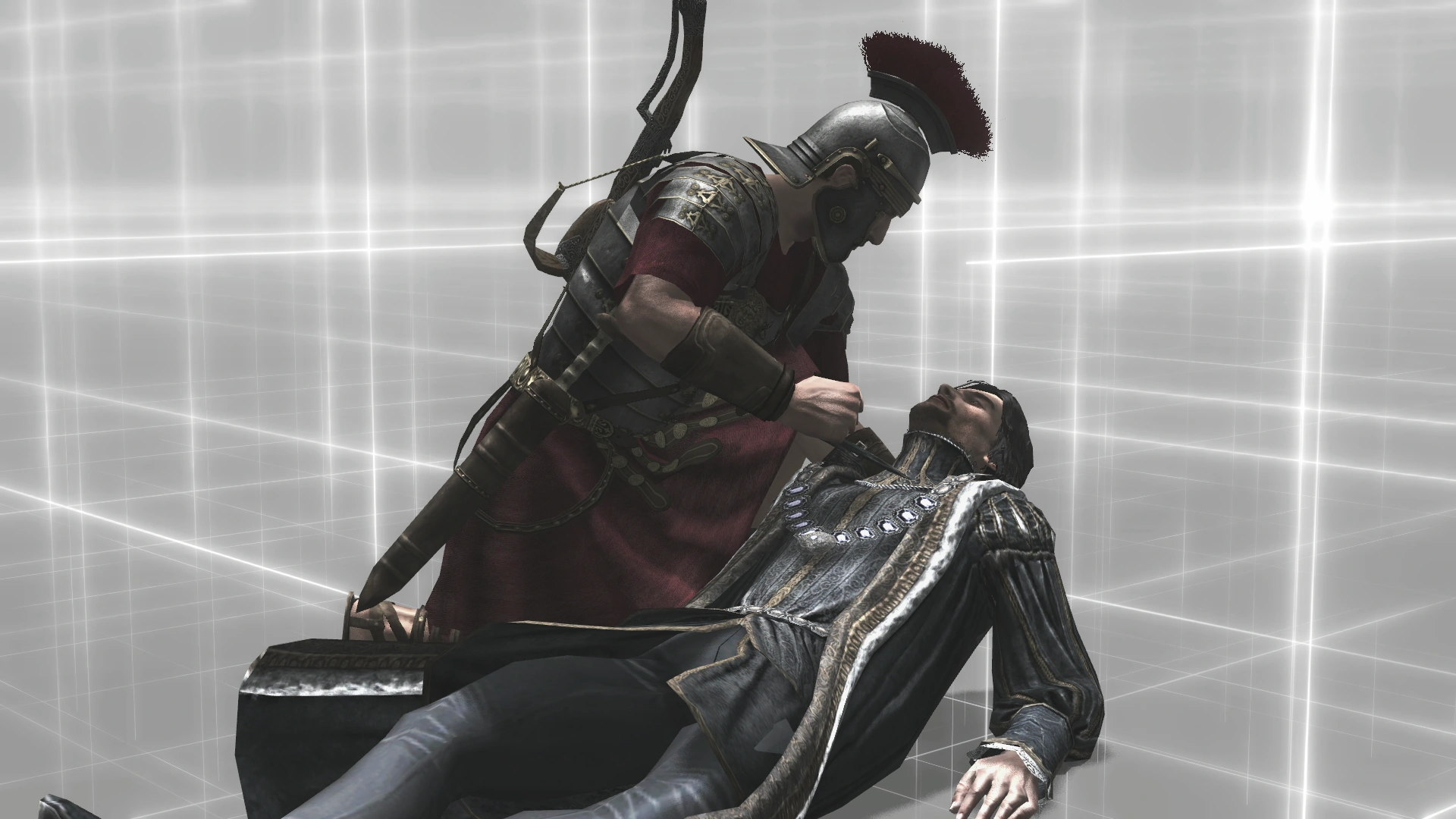 Ezio nota che l'uomo a cui Pilato si rivolge è Micheletto travestito, e lo atterra prima che possa uccidere Pietro.