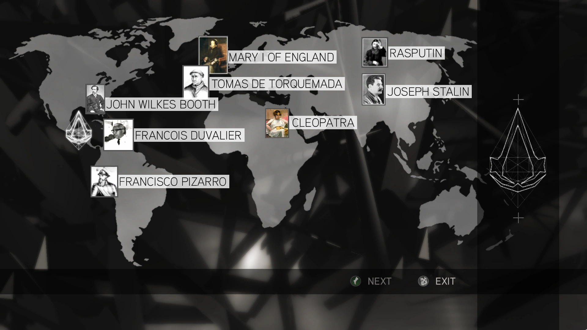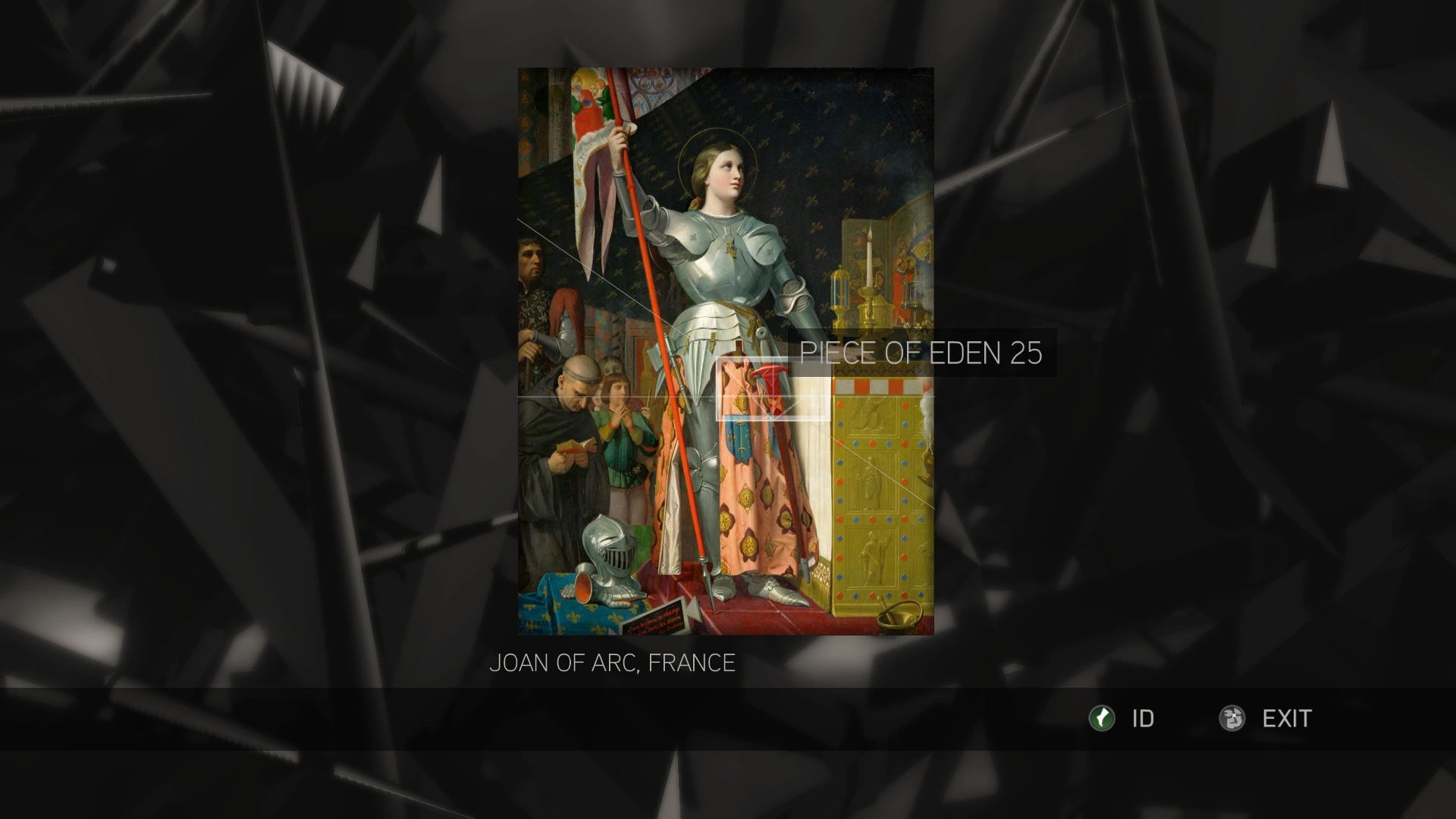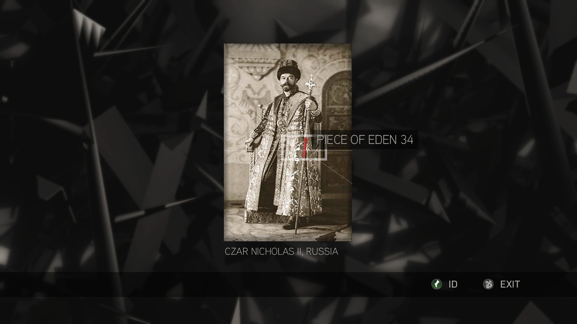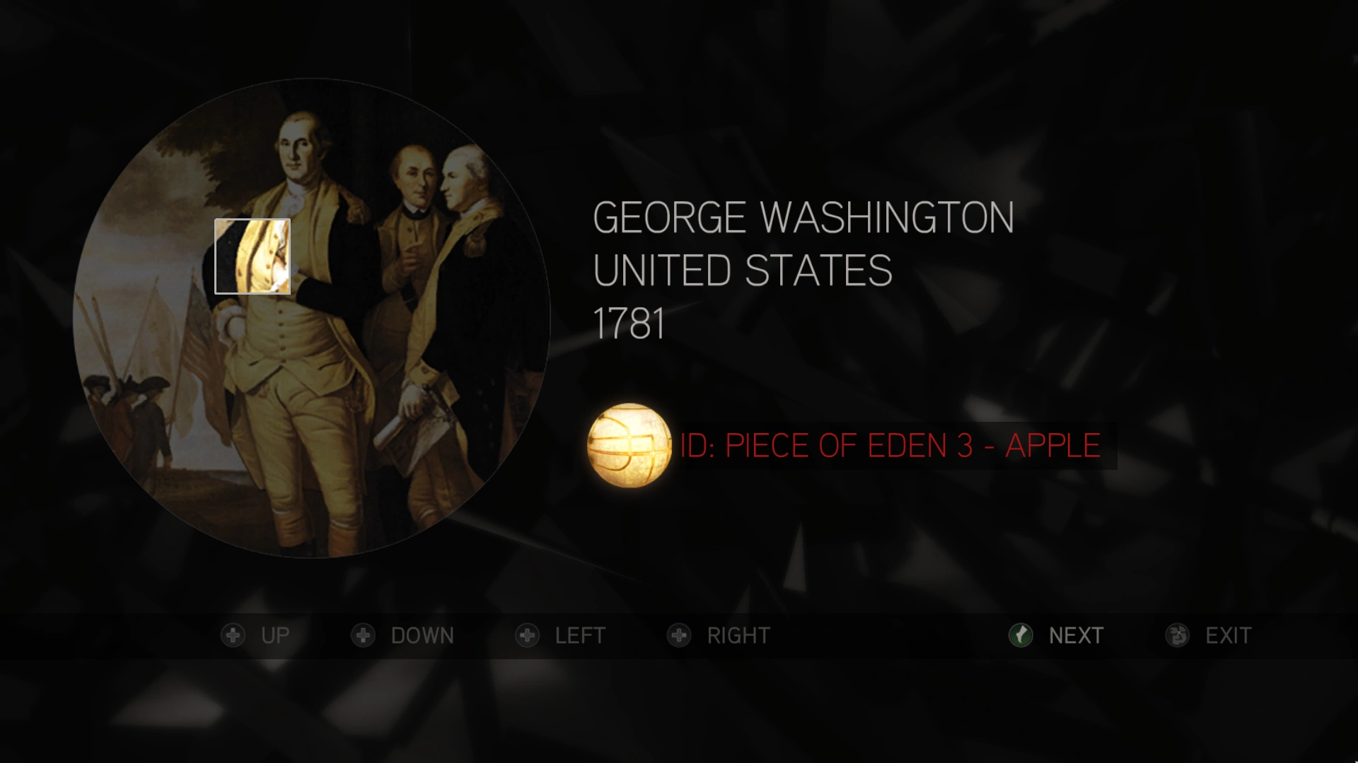 Piramide dell'Eden, un design originale formato da una serie di occhi racchiusi in un trinagolo con una mela che si irradia direttamente sopra di esso. Simboleggia il piano dei Templari di utilizzare la Mela nel satellite Eye-Abstergo per controllare l'intera umanità. | |