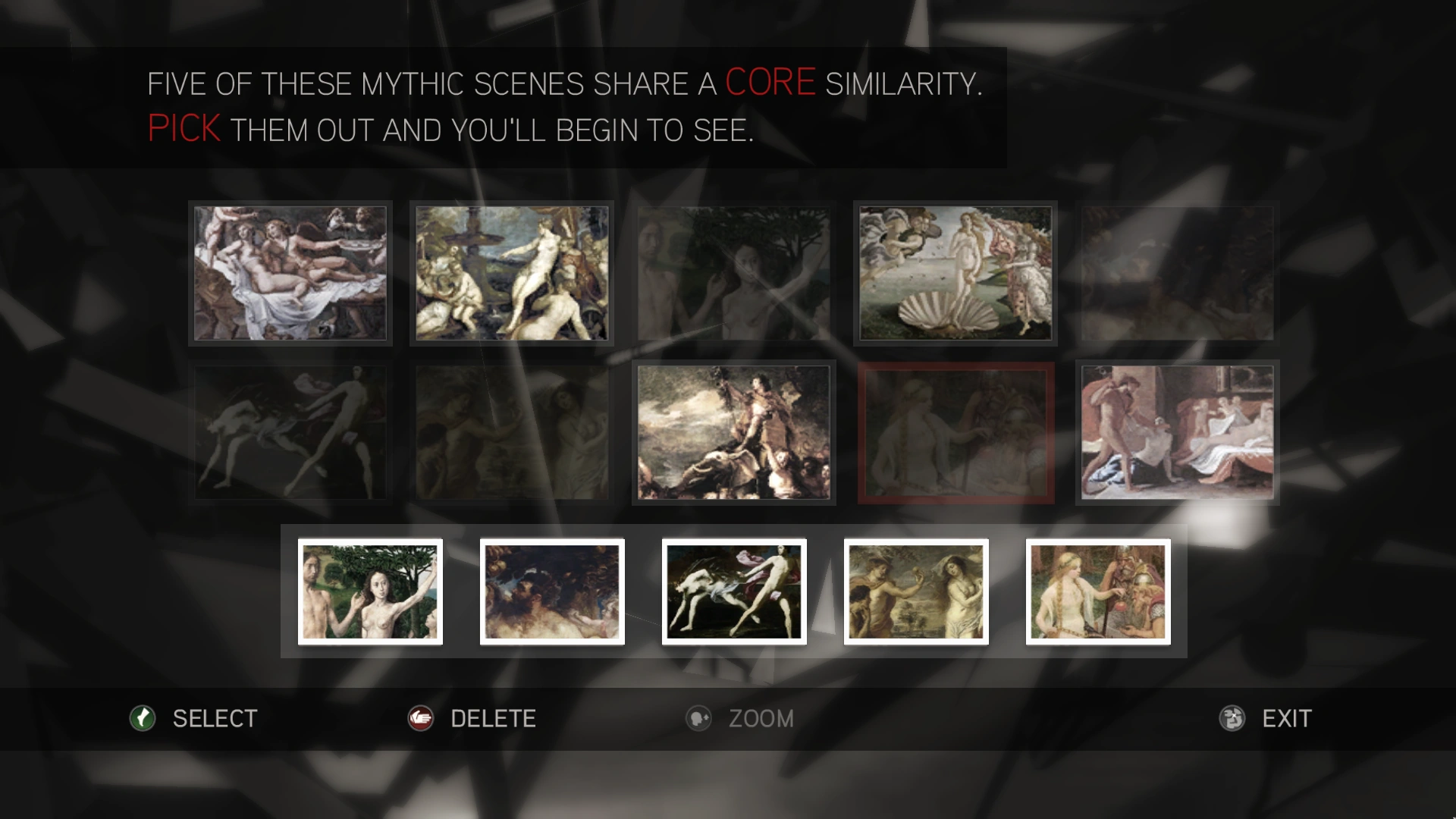 Cinque di queste scene mitologiche hanno un elemento in comune. Riconoscilo e inizierai a vedere.
