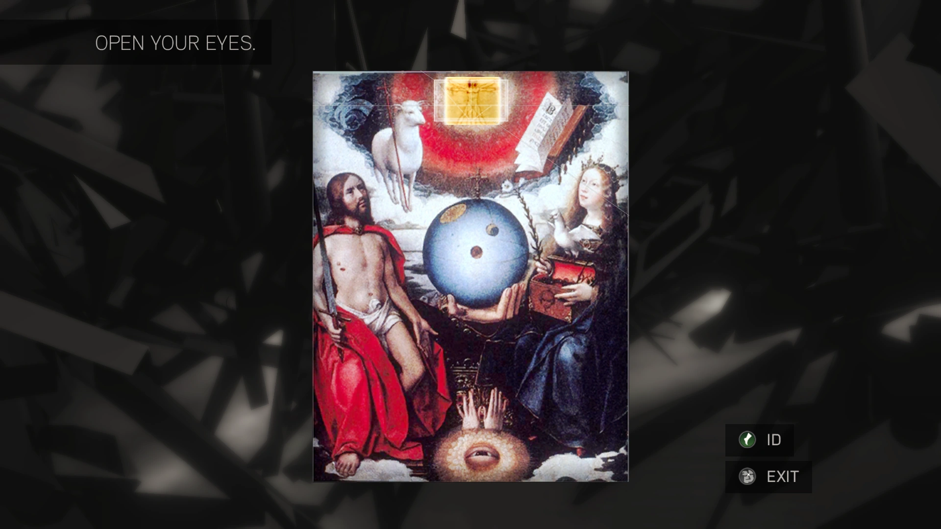 L'occhio di Horus. Questo simbolo può essere un riferimento a Horus, all'Egitto e ai Frutti dell'Eden collegati, ma può essere un riferimento anche all'Ordo Templi Orientis, un'organizzazione tedesca-austriaca simile alla massoneria che si credeva fosse correlata ai Cavalieri Templari, e aveva un occhio di Horus disegnato sopra il loro lamen. |