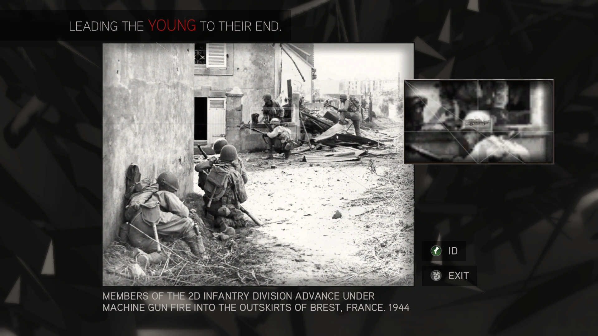 Uomini della seconda divisione fanteria avanzano sotto il fuoco nemico nei dintorni di Brest, Francia. 1944