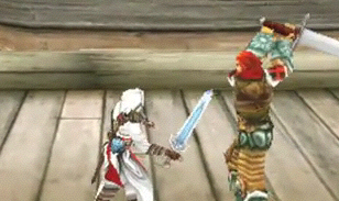 He was confronted by Basilisk who challenged him to a battle. Altaïr accepted and fought long and hard. Eventually he overpowered Basilisk and killed him. Little known by Altaïr at the time, the ship which Adha was on was leaving the docks. Altaïr tried to rescue her but didn't make it in time. Basilisk's ship was set on fire, and Altaïr quickly fled the scene. The ship left the docks and Altaïr watched it leave from the harbor.[5]