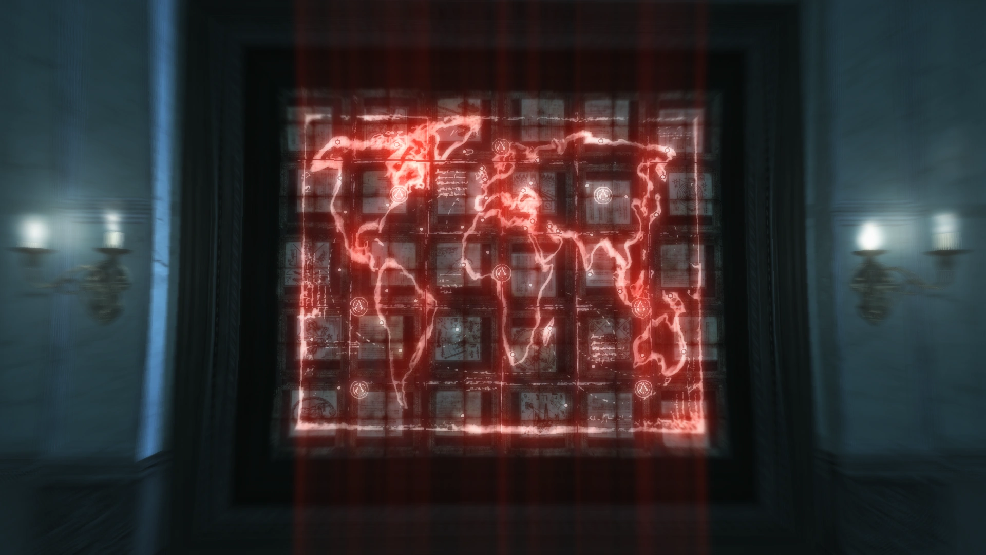 Following the destruction of the second Apple of Eden during experimental use at Denver International Airport, the Templars found themselves in need of another artifact with similar properties. Needing access to a map that indicated the location of all Pieces of Eden, the Templar-front company Abstergo Industries kidnapped the descendant of Altaïr Ibn-La'Ahad – Desmond Miles – in order to view the memories of his ancestor. This would allow them to view the very same map that Altaïr had discovered in 1191.[3]