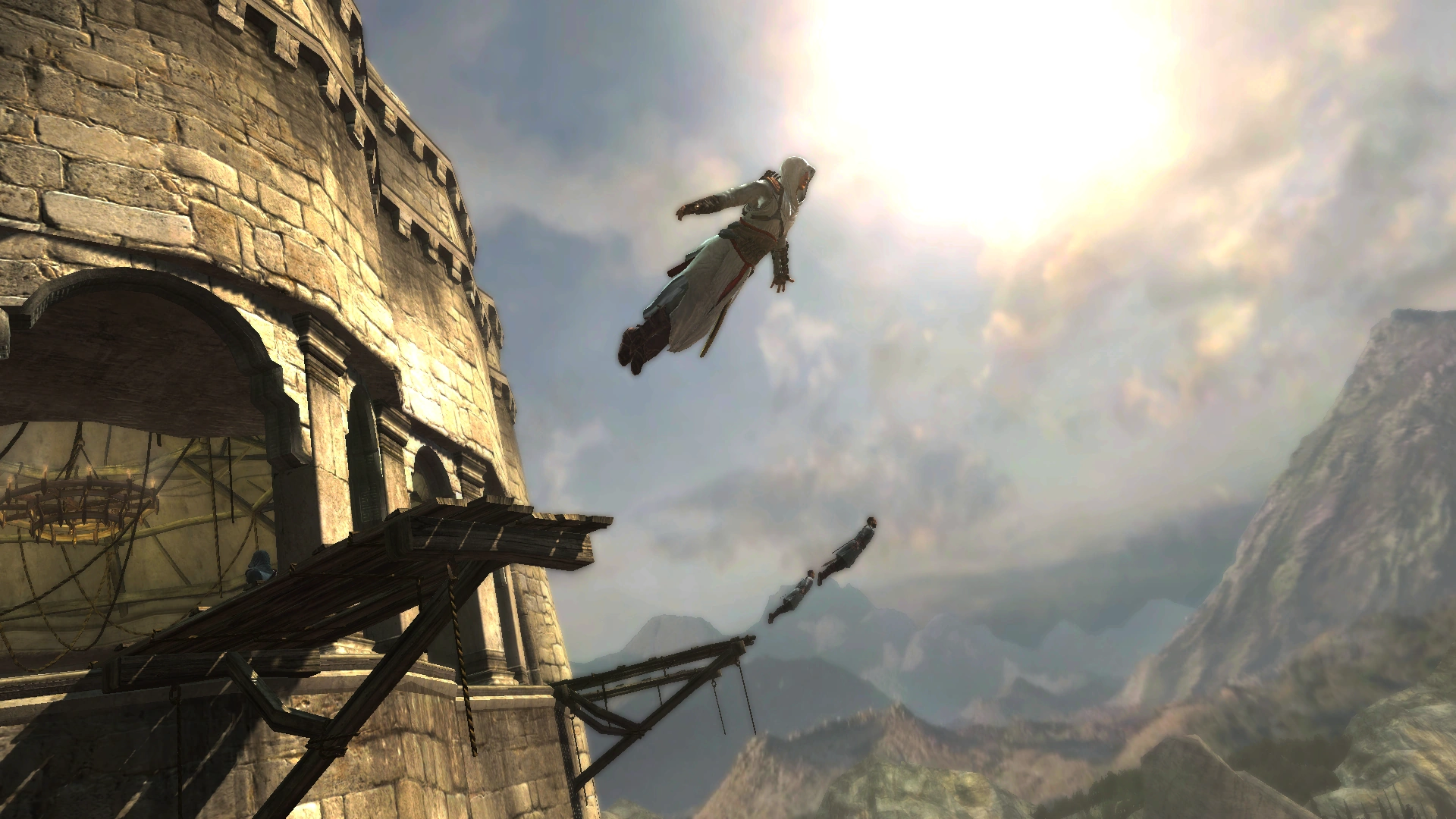 신뢰의 도약을 하고 있는 알타이르와 다른 암살자들