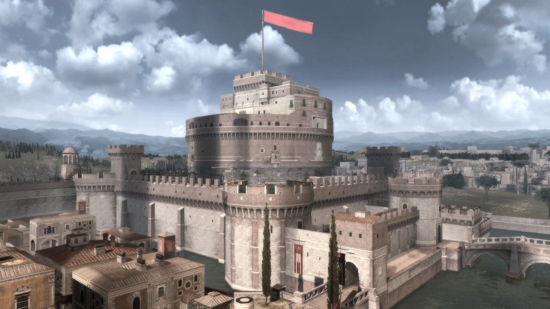 Het Castel Sant'Angelo (Nederlands: Engelenburcht), oorspronkelijk bekend als het mausoleum van Hadrianus, was een significant cilindrische vesting die gelegen was in het Vaticano-district, bereikbaar via de Ponte Sant'Angelo. Het was een eindpunt aan de Passetto di Borgo en kon gevonden worden op de oevers van de Tiber-rivier.
