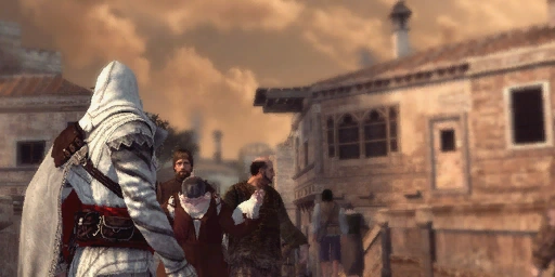 - Als de camera naar Ezio's gezicht gericht stond wanneer de stem hem riep, kon gezien worden dat Ezio Leonardo's zin zei.