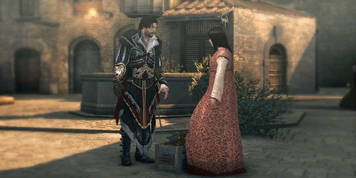 Tijdens zijn wandeling door Monteriggioni, zag Ezio een vrouw en hij hielp haar met het dragen van een zware kist rozen naar de Villa Auditore.
