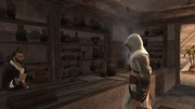 Altaïr falando com o guarda ferido.