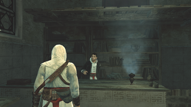 Al Mualim também informou Altaïr que o estudioso que os Templários procuravam foi interrogado e agora os Templários sabem da localização ou como achar o Cálice, colocando-se um passo a frente dos Assassinos. Al Mualim então deu a missão de encontrar o Cálice antes dos Templários, e o enviou a Damasco para iniciar sua busca.