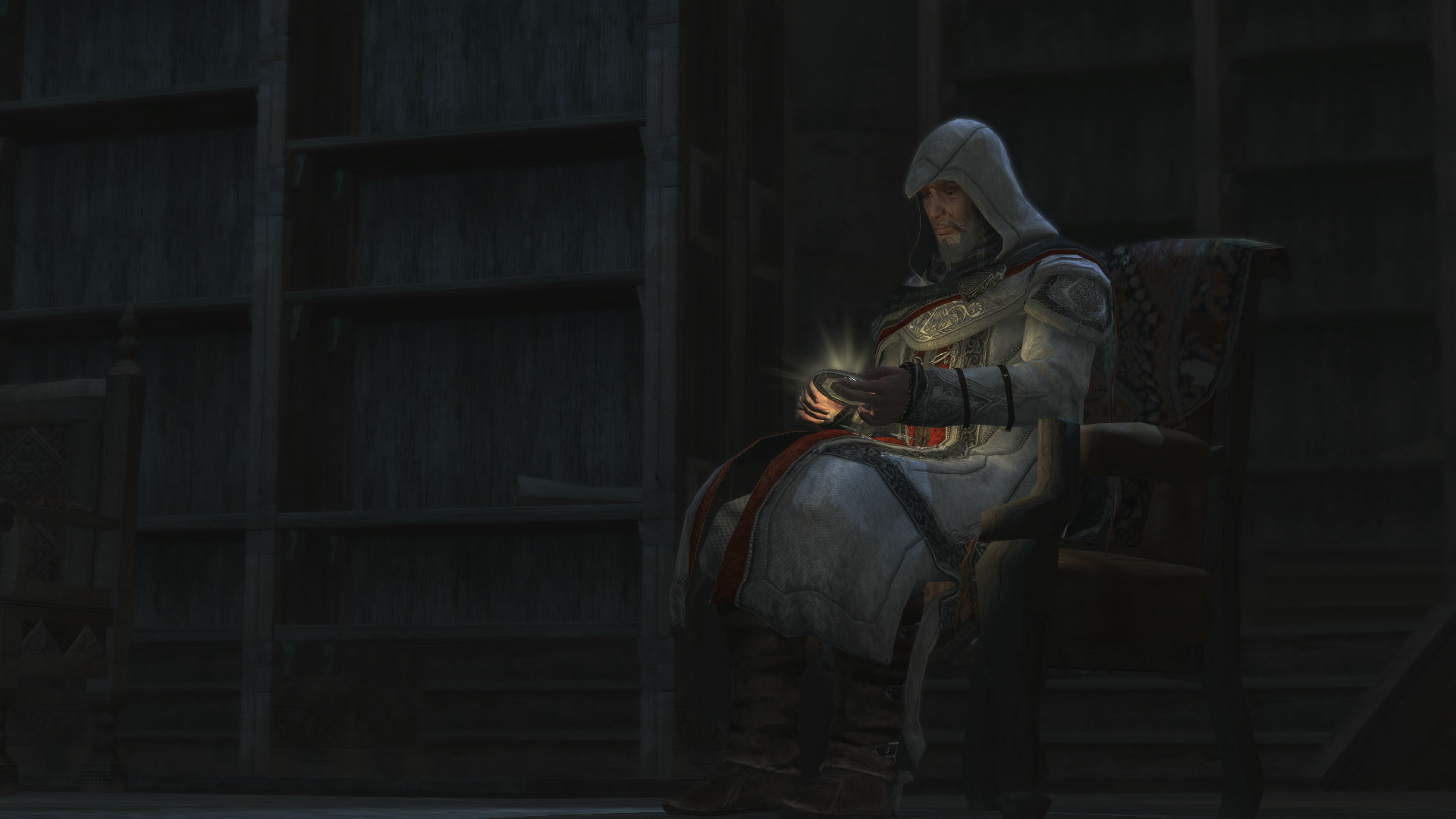Altaïr então colocou a Maçã dentro da Biblioteca, e confirmou a teoria de seu filho que a Livraria era no final, uma cripta, uma câmara. Dando um abraço de despedida a Darim, Altaïr fechou a porta e sentou-se na cadeira, com o sexto selo em mão, para finalmente descansar.