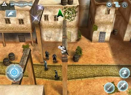 Гра являє собою аркаду з видом збоку, але ігровий процес розбавлений різними міні-іграми, в яких використовується сенсорний екран. Бойова система складається зі слабких, сильних атак і їх комбінівання. Гравцеві доступно сім різних видів зброї: прихований клинок, меч Альтаїра, арбалет, фугасні бомби, димові шашки, метальні ножі і гак. За допомогою останнього можна збивати супротивників з ніг.