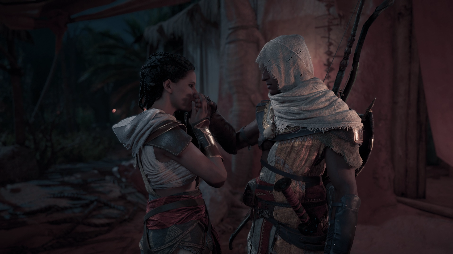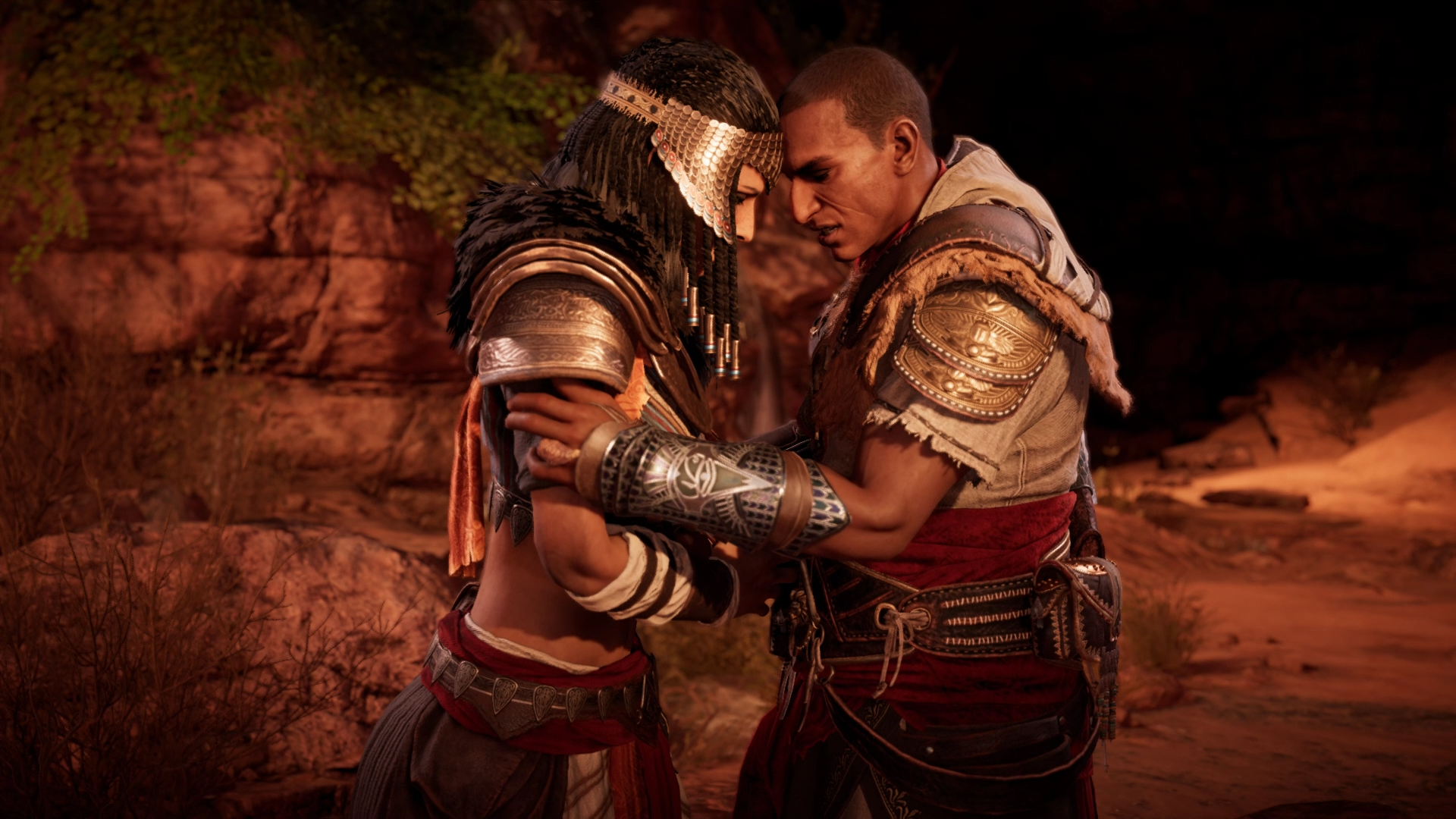 Amunet and Bayek bidding each other farewell for the final time