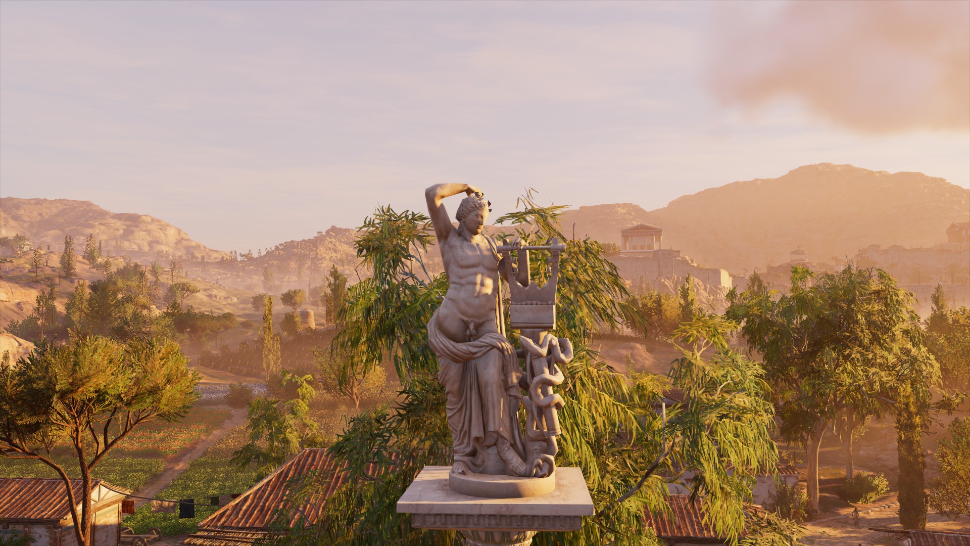 The statuette in Assassin's Creed II is based on Apollo Belvedere. The statue of Apollo seen widely in Assassin's Creed: Origins is based on Apollo of Cyrene, a 2nd century BCE Roman marble statue discovered in Cyrene, while the mural depicting him with a bow in Assassin's Creed: Odyssey is based on a painting on an amphora from Late Classical period, depicting the Battle of the Giants and Gods.