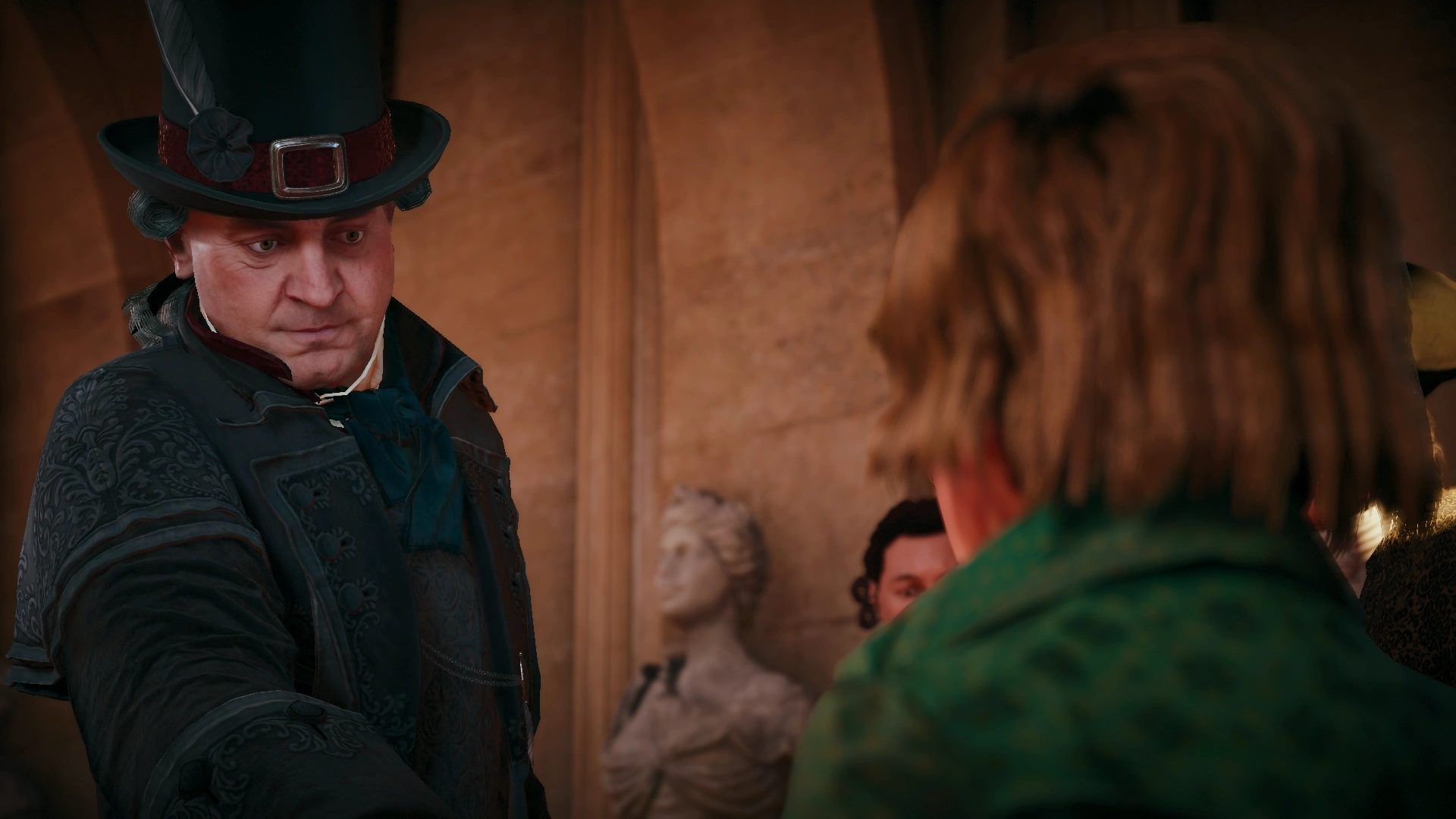 As François left the household in his carriage, the messenger Perrault attempted to deliver a letter that Arno volunteered to deliver in his stead as Perrault was already exhausted. Initially, he lost sight of François' carriage and mistook another carriage for his. Facing an angered man, Arno apologized to him and dashed off, climbing the spire of a nearby church in the hopes of locating François' carriage. Once atop the spire, he used Eagle Vision to spot the carriage, which had been parked in the courtyard of the Hôtel des Menus-Plaisirs.[10]