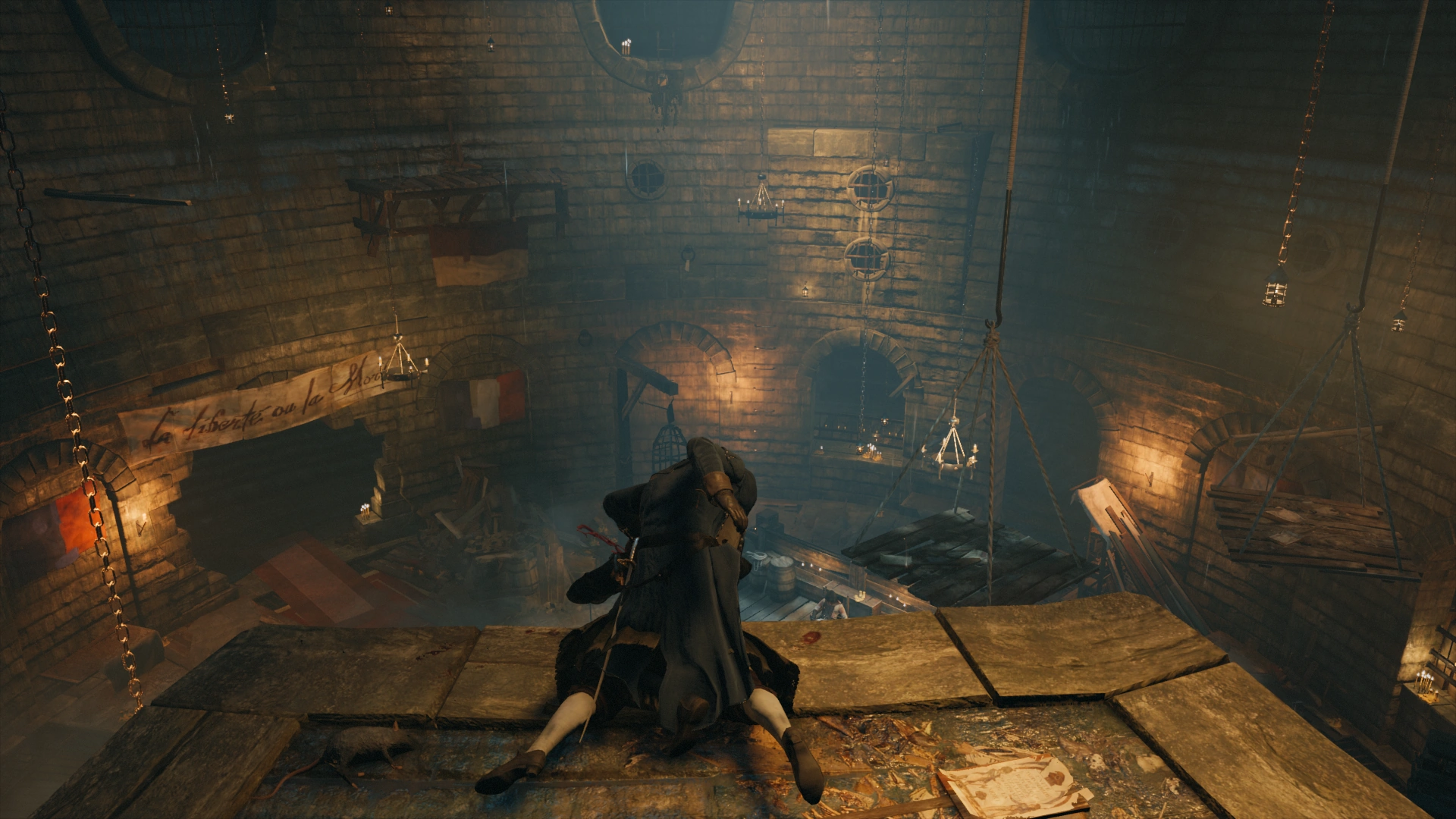 Wracked with guilt and blaming himself for his adoptive father's death, Arno drowned his sorrow in alcohol. Looking at the medallion Bellec had given him, Arno saw with his Eagle Vision the symbol of a rose window. Wishing to make amends for his past mistakes, he decided to join the Assassins despite his initial reluctance. Matching the medallion's symbol with the window of the Sainte-Chapelle, Arno went to the chapel. Finding a mechanism, he placed the medallion inside of it and rearranged the chandeliers, revealing a secret hole in the floor.[13]