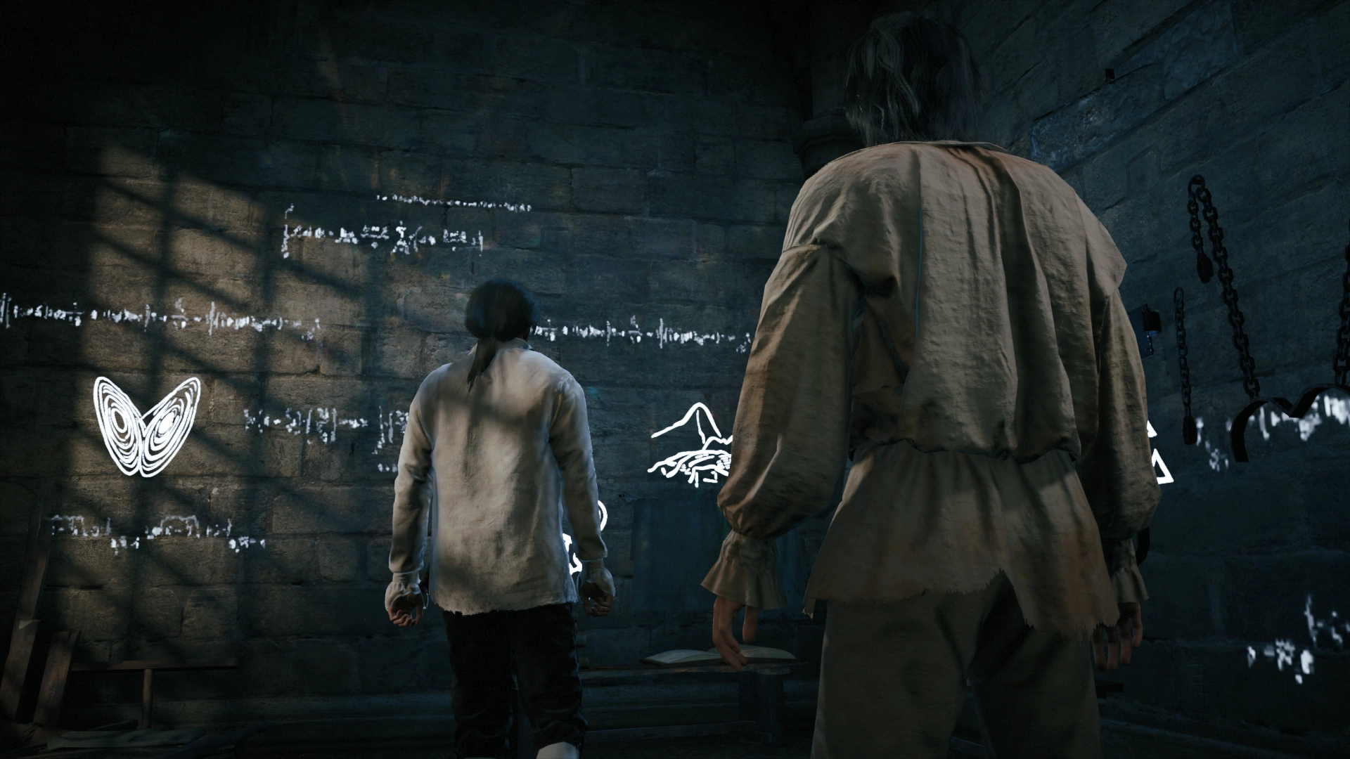 Going to sleep, Arno woke up the next morning to see that the prisoner who had called him "pisspot" had stolen his father's watch. Infuriated, Arno demanded that he give it back, but was challenged to a duel with wooden training swords. After besting the prisoner, Arno once again demanded his watch back before telling the man to return to his "crazy drawings". As the prisoner asked what drawings he was referring to, Arno showed him the wall but saw that the drawings were no longer there.[12]