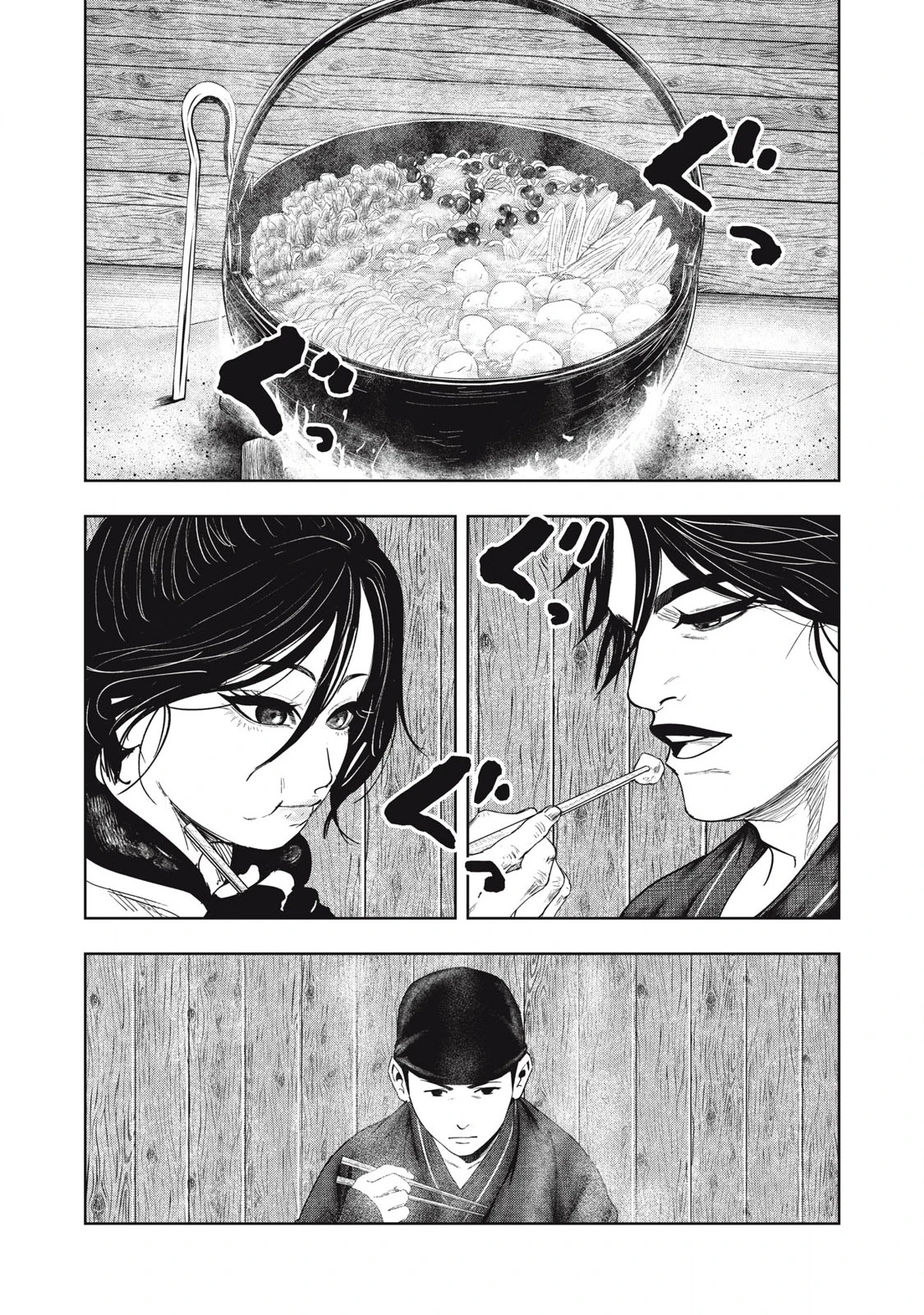 In the dining quarters, Fujibayashi Masayasu, Tsuyu, and Konan eat their meals together but Konan feels some tension within the room. He begins to wonder who Tsuyu is and why Hattori Hanzō left for Mikawa for Momochi Sandayu. While Tsuyu eats, Masayasu starts to critique her eating, which enrages her to leave the room abruptly. While Masayasu yells at her for her lack of manners, Konan asks if he is okay and that his demeanor has changed recently. When Masayasu explains that the recent attack changed him, Konan can sympathize and even informs him of the fighting between the Oda clan and the Imagawa clan taking place in multiple regions.