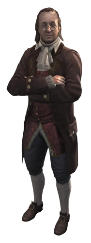 Franklin was acquainted with Assassins and Templars alike in the colonies, including Grand Master Haytham Kenway, the Assassin Hope Jensen, and the Assassin defector Shay Cormac. On occasions, he assisted the Assassins but did not always realize the greater powers and conspiracies involved with his friendships. As a Patriot, he played a pivotal role in the American Revolution which established the United States of America and acted as a crucial diplomat for the fledgling nation. In an alternate future projected by an Apple of Eden where George Washington proclaimed himself king instead, he proved to be an essential ally to Ratonhnhaké:ton in overthrowing the tyrant,