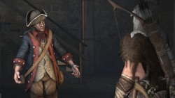 Ratonhnhaké:ton stated they would have to leave Boston by sea, and Franklin suggested using the Aquila, a ship he had confiscated from Robert Faulkner. Ratonhnhaké:ton stole a Bluecoat uniform for Franklin to pass through the streets unnoticed to meet Faulkner, whom they promised they would return his ship if they found a crew. The following morning, the rebels escaped on the Aquila, after Ratonhnhaké:ton assassinated Putnam.[6]