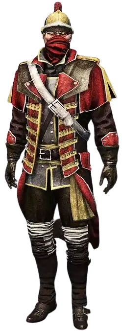 Bounty hunters of the French and Indian War commonly wore gas masks in the form of simple bandanas. These bandanas were sufficient in protecting them against toxic or hallucinogenic gases. The combat prowess of bounty hunters of this era was exceptional and far superior to that of regular soldiers in the British and French Armies. Even Shay, who killed countless Assassins throughout his Templar career, could not match them in swordsmanship, finding their defences to be unassailable.[1]