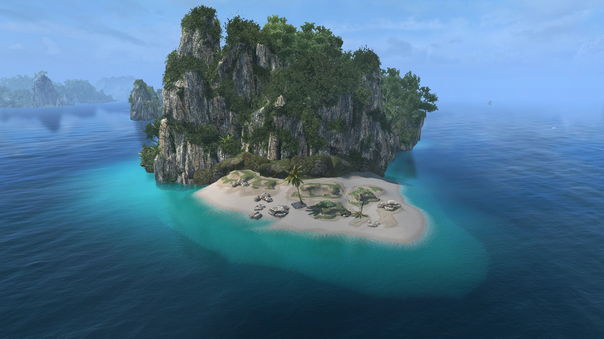Cayo Island was a small island north of Cuba. Most of the island consisted of cliffs and trees, with a beach on one side, featuring rocks, bushes and palms.