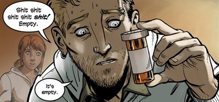 Daniel panicking over his empty medicine bottle