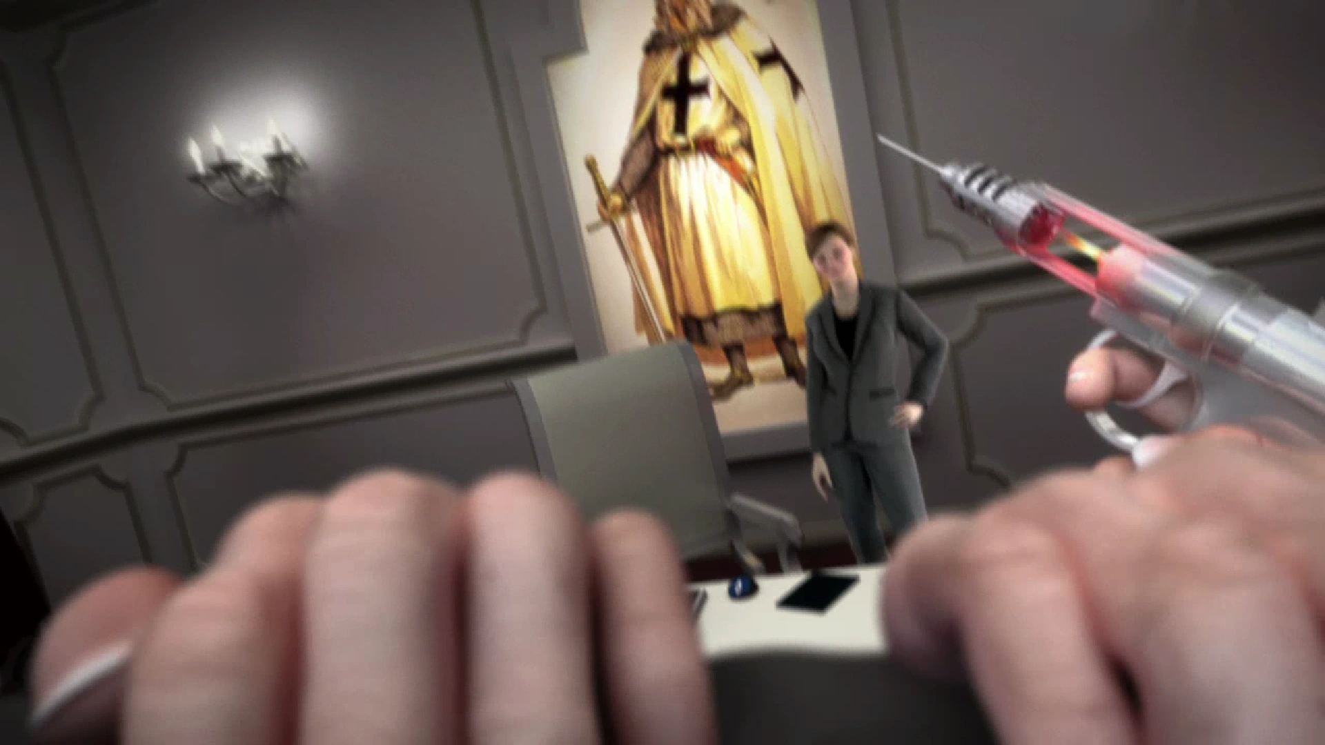 Within the day, Daniel flew to Rome, where Vidic held William hostage in hopes of obtaining Desmond's Apple of Eden as an exchange. After Desmond arrived at the facility on the evening of 14 December, Daniel confronted him once more in Vidic's Animus room at 5:27 P.M.[52] and demanded he hand over the Apple.[2]
