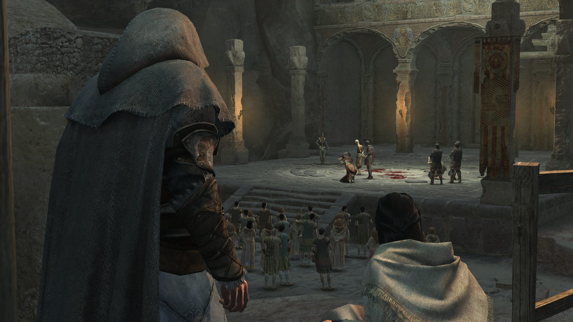 Making their way across the city, they arrived in time to see Shahkulu beating a spy named Janos. Ezio free-ran around the area and made his way to a small platform, directly above where Shahkulu stood, since he realized that the Templar's armor was too thick for bullets. Ezio then leapt from the beam, and air-assassinated Shahkulu with his Hidden Blade.[9]