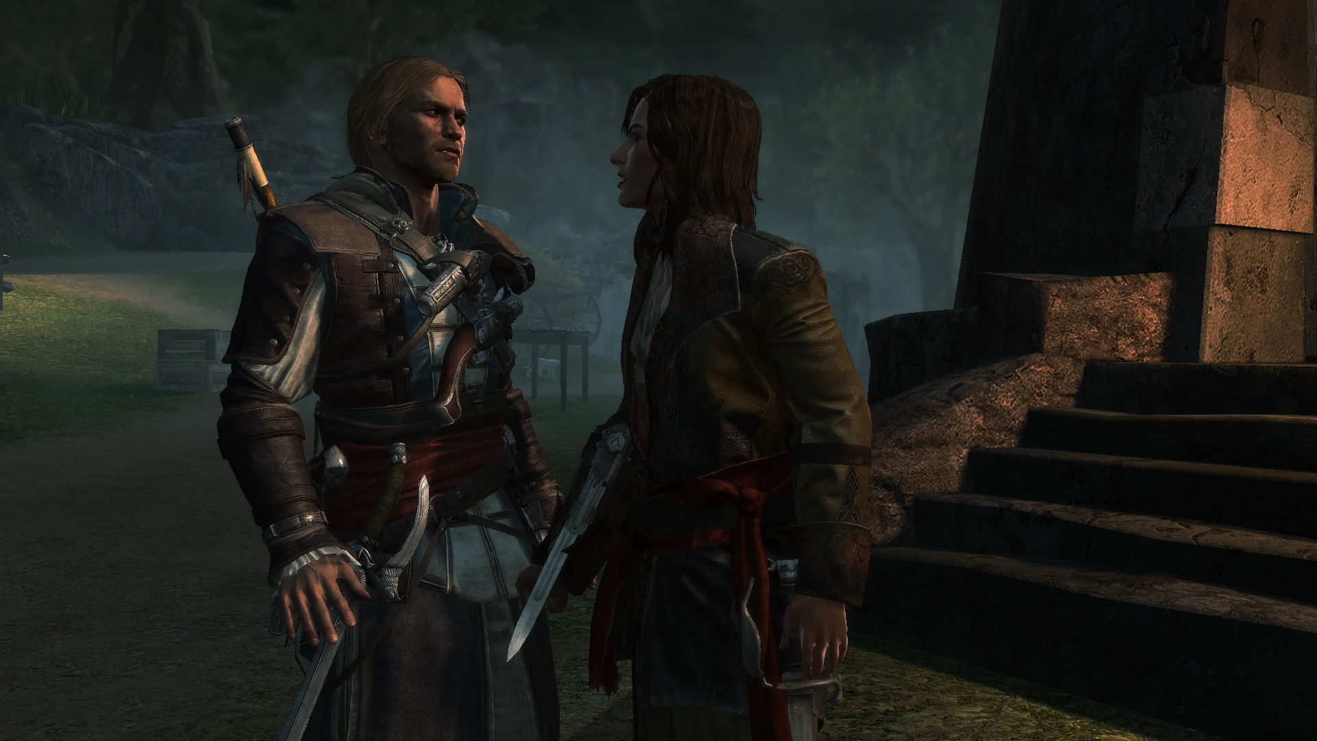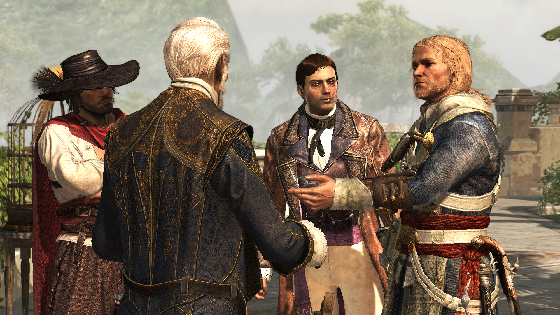 Edward carefully maintained his charade as he conversed with prospective Templars Woodes Rogers, whose wife had met Duncan, and Julien du Casse. Du Casse equipped Edward with a new pair of Hidden Blades and requested that Edward show them some Assassin techniques in action. Picking up on hints from du Casse and Rogers, Edward was able to replicate the moves with relative accuracy.[19]