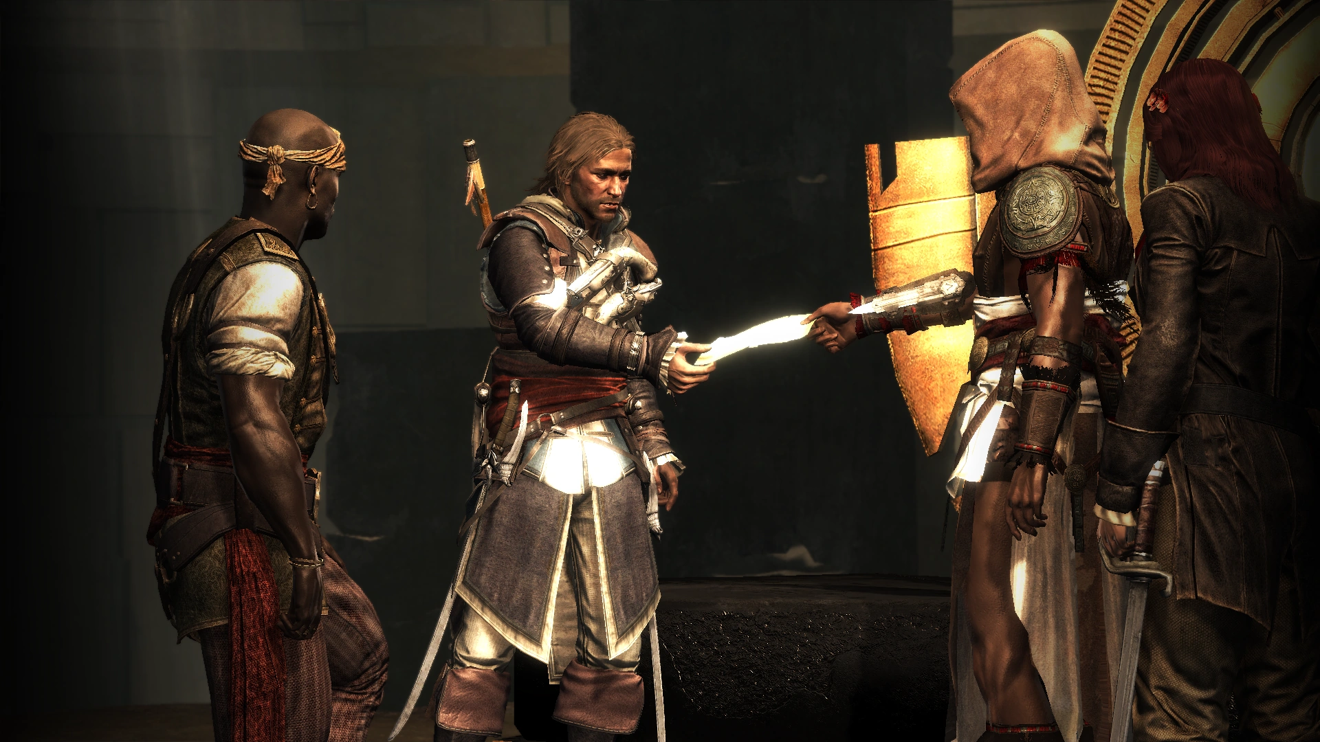 Trying out a key he had taken from du Casse, Edward saw that he required four more to unlock the armor. Kidd suggested that the keys could be found in the possession of four Templars sent to attack the Assassin bureaus whose locations had been compromised by Edward when he delivered Walpole's maps to Torres. Although Kidd advised that this was an opportunity for Edward to fix his mistake by warning the Assassins, the latter was only interested in the keys.[29]