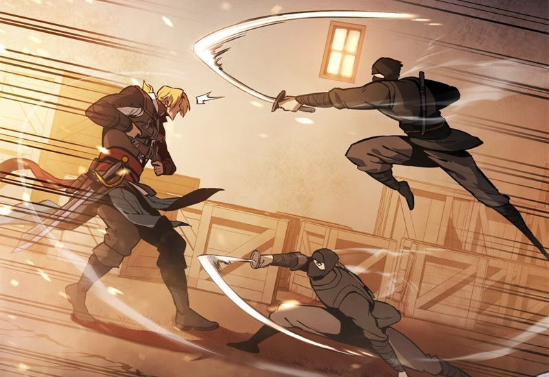 During his youth, Edward became skilled with throwing knives, with which he practiced in his free time. He also proved to be a capable hand-to-hand combatant, having been experienced in several brawls in local taverns where he could take down multiple opponents, as well as utilize the environment to his advantage.[33]