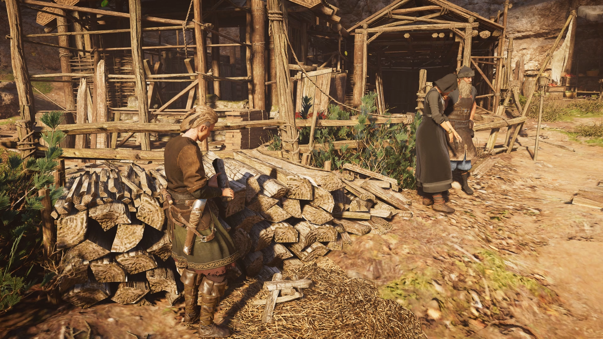 After the battle, Eivor met a group of young Norse children, including a girl named Kaija, who were conducting a roleplay and pretending to raid a village. Eivor joined the children, who named themselves the "Wolf Pack," with Eivor herself being named "Big Wolf." At the village, which was really a torn down building with dummies set up, Eivor helped loot the area and destroy the dummies before finding out that Kajia and her friends were children of Kjotve's Wolf Clan.[24]