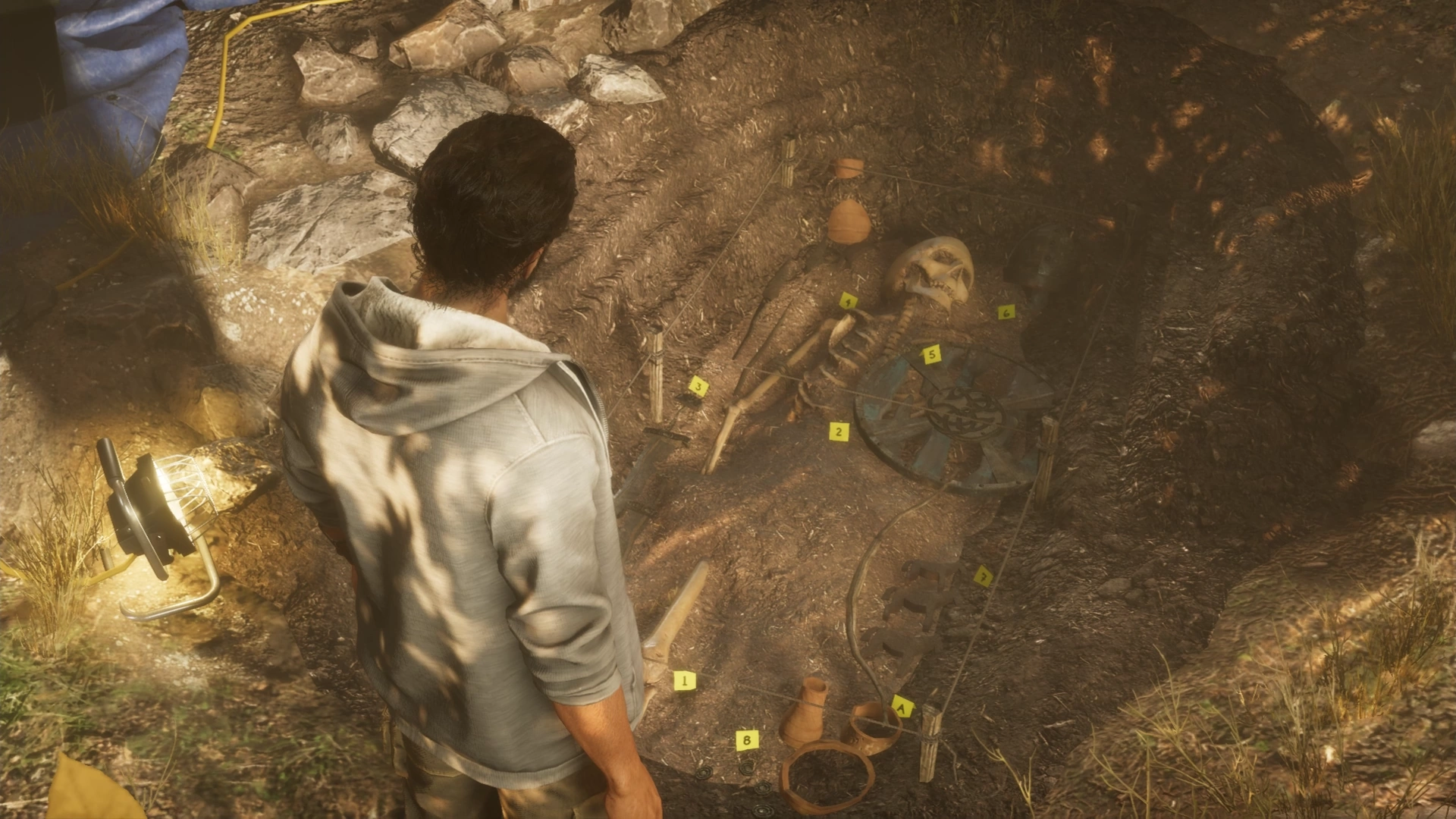 The location had been overrun by Saxon bandits, though Eivor, Sigurd, and Dag made short work of them. Searching the encampment, the trio discovered two prisoners of the bandits: Yanli, a Chinese merchant, and Rowan, a Saxon stable hand. When Eivor freed them, the two revealed that they were sent by Halfdan Ragnarsson to work with the Sons of Ragnar, but by the time they arrived, they were long gone. Once given the choice to stay with the Raven clan, the two accepted. A horn then sounded, heralding the arrival of the rest of the longships led by Randvi. Eivor and her clan then unloaded all their gear and began to renovate the dilapidated longhouse.[29]