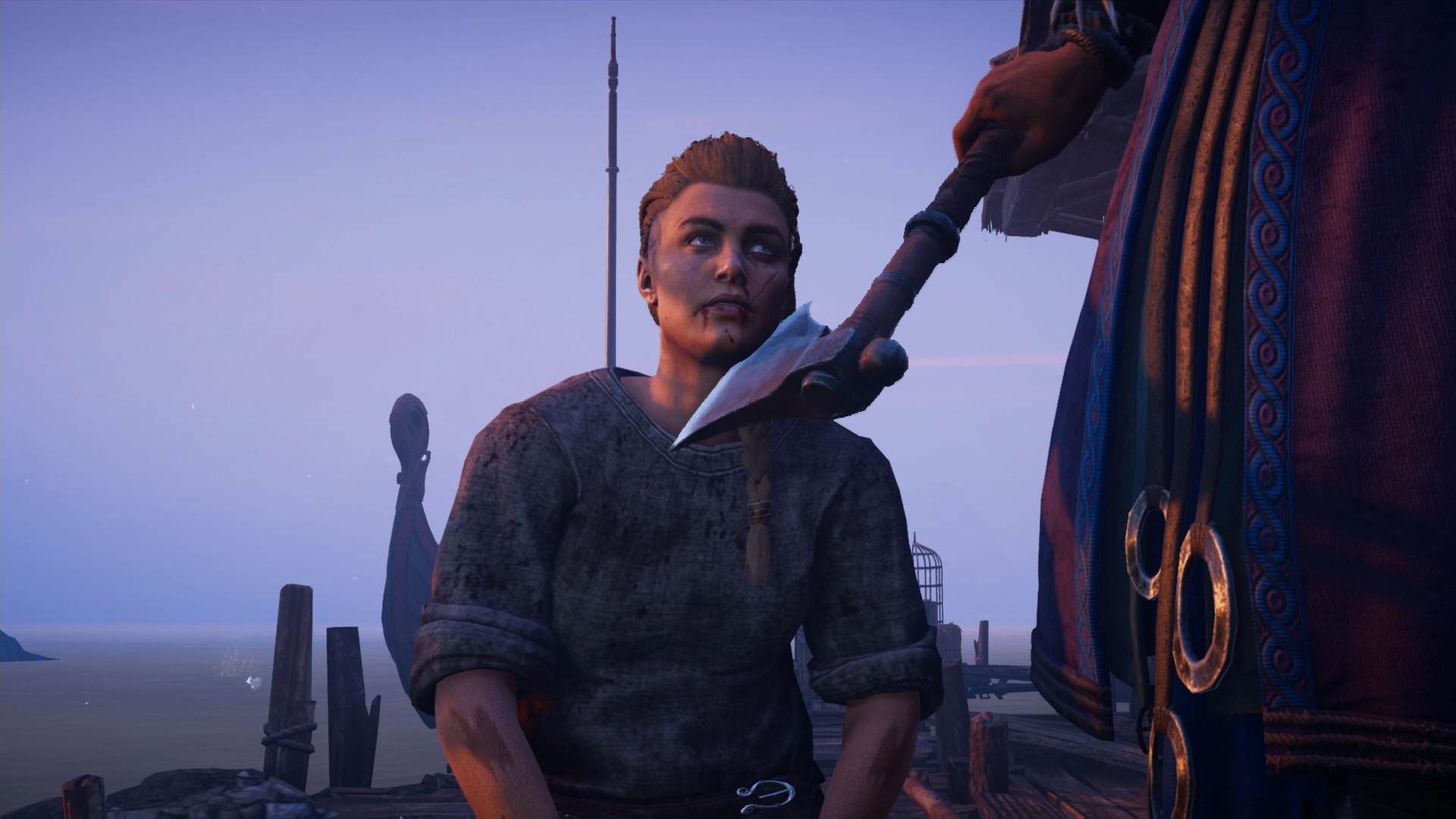 Eivor saw Valka and invited her along, although the latter would stay until her mother passed before joining up with the others. Eivor made her way to the docks where she met Sigurd and the departing clan members. At that moment, one of Harald's longships approached, holding Styrbjorn. He pleaded with his son to stay but Sigurd refused. Concluding that his son would not give up on his intentions, Styrbjorn commanded Eivor to be his better half before blessing their journey and leaving.[27]