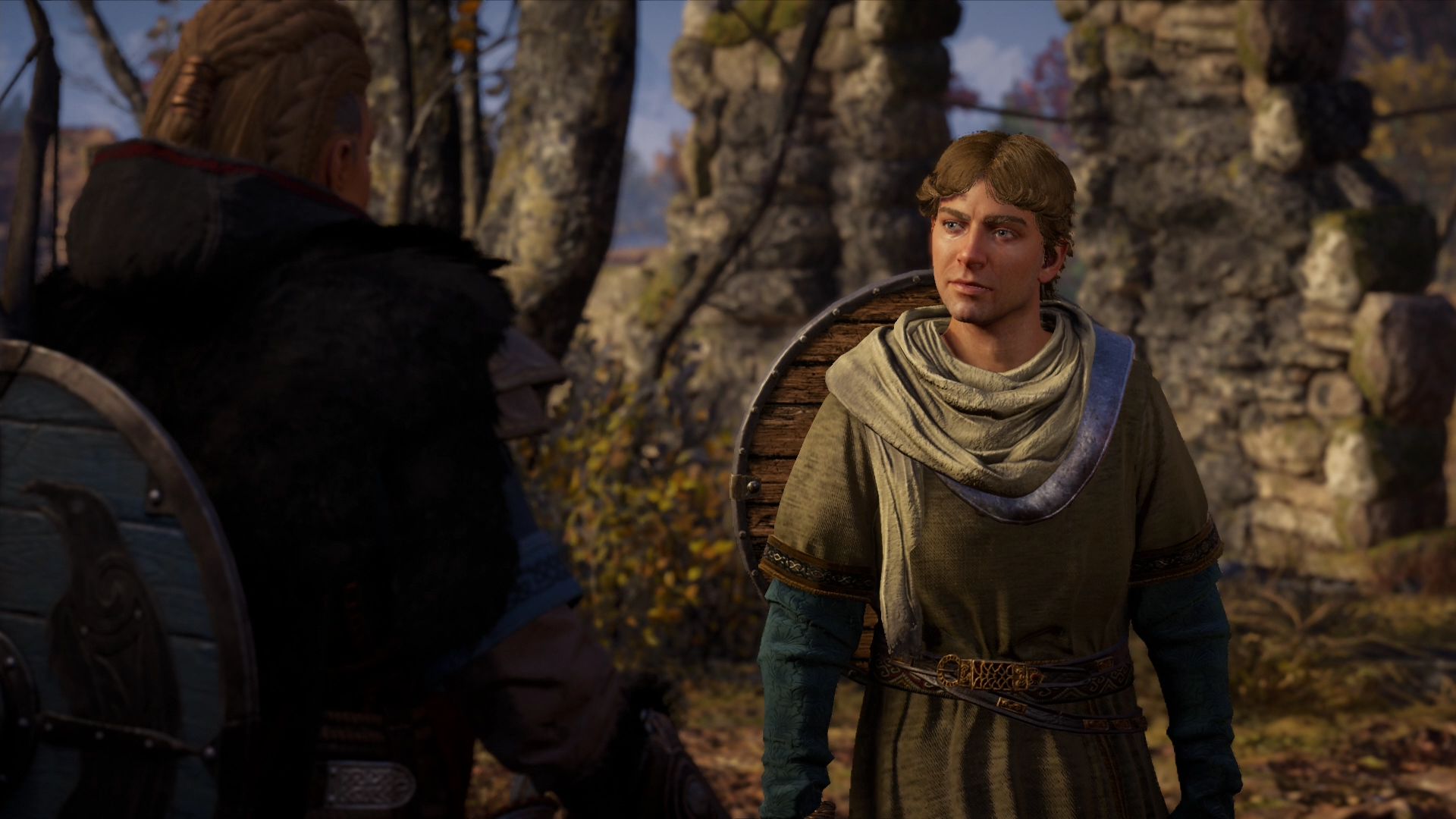 Varin's apparent sacrifice led Eivor to resent him for his perceived weakness, something which was further influenced by the input of others. When she was alone on a cliff stacking stones to ease her mind, Sigurd tried his best to comfort her. He told her that she would be taken into Styrbjorn's household and raised by him, alongside himself. Eivor then cried into her new brother's shoulder as he led her down home.[4] Eivor went on to grow up alongside Sigurd, and, during this period, she befriended members of the neighbouring Clan Hemmingsons, led by jarl Hemming, Trygve, and Hemming's son Vili.[9]