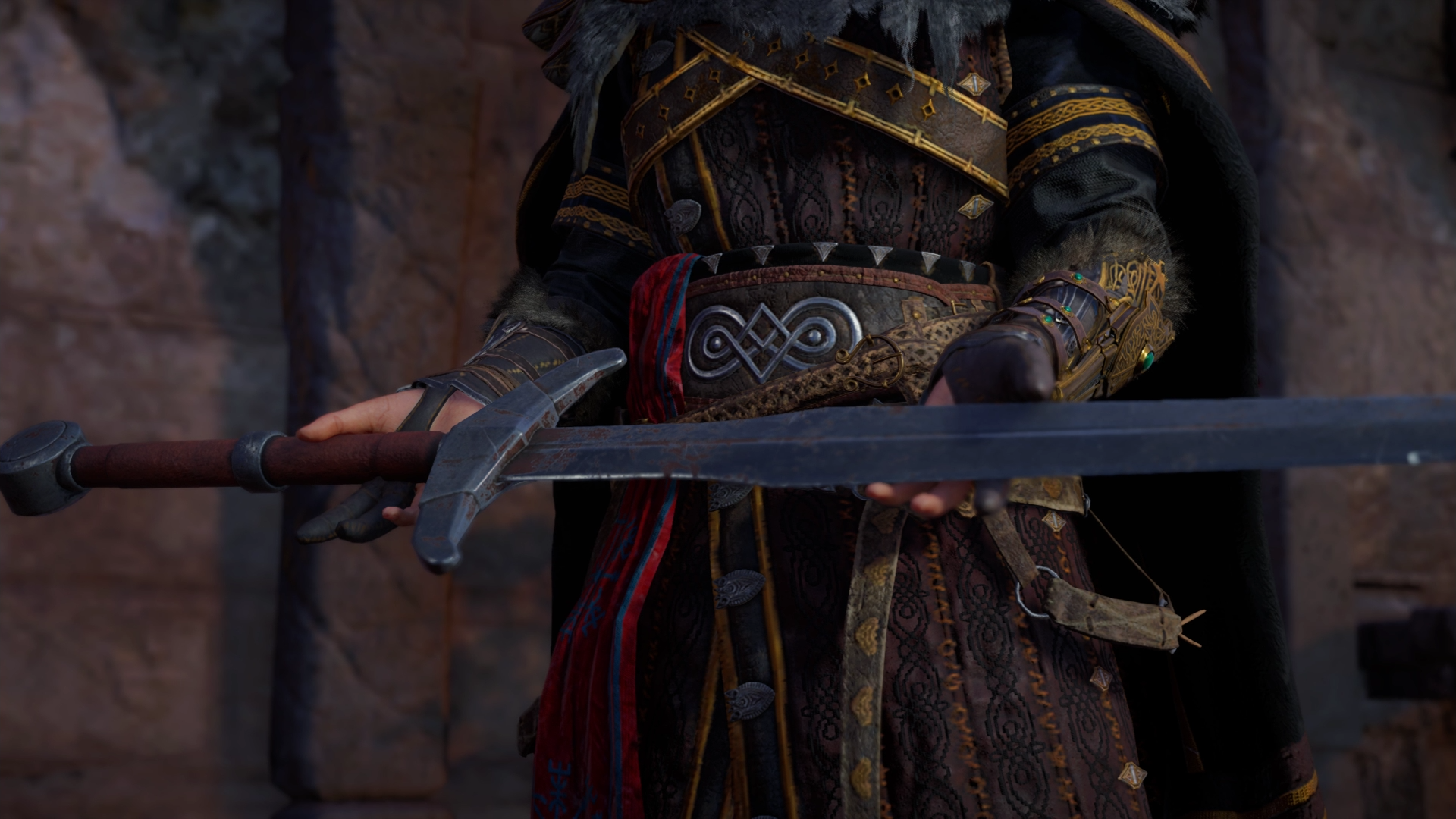 Upon returning, Eivor was greeted by Sigurd's wife Randvi, who informed her of Styrbjorn's displeasure with her raid against Kjotve. Eivor also learned that his brother would be returning soon from his long-lasting journey. Eivor went to talk to Styrbjorn, though was told that he was in a meeting with a messenger.[8]